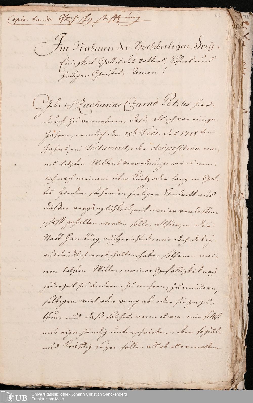 Na 31 Nachlass Johann Christian Senckenberg, 200 - Frankfurtische Vermächtnisse und Stiftungen