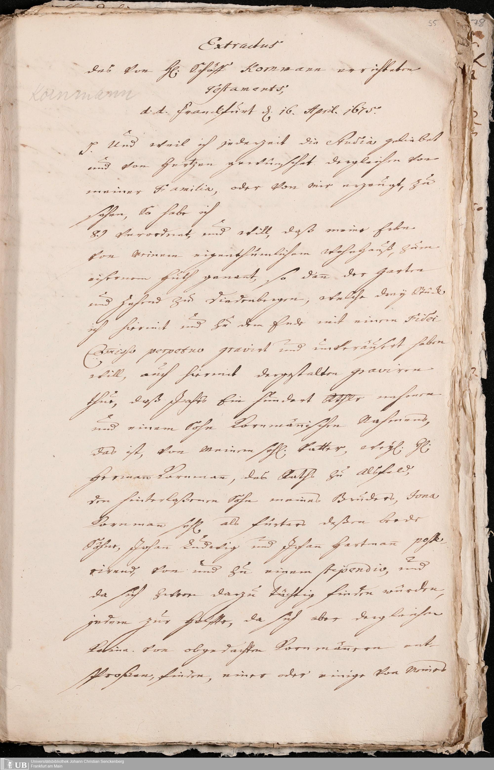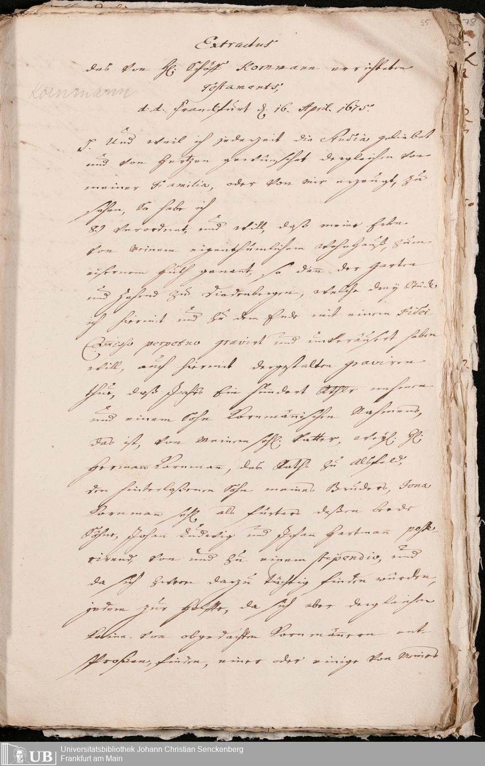 Na 31 Nachlass Johann Christian Senckenberg, 200 - Frankfurtische Vermächtnisse und Stiftungen
