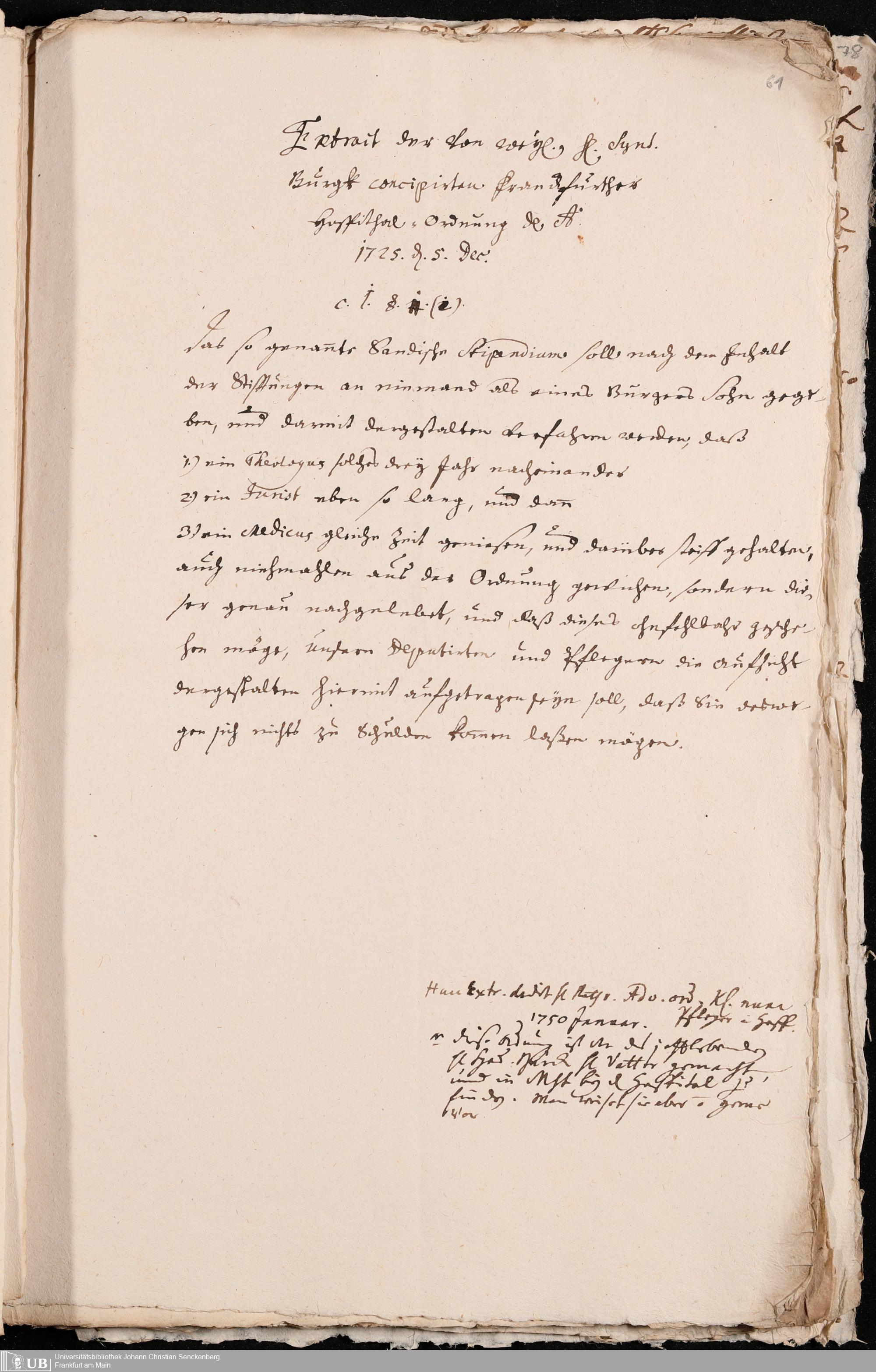 Na 31 Nachlass Johann Christian Senckenberg, 200 - Frankfurtische Vermächtnisse und Stiftungen