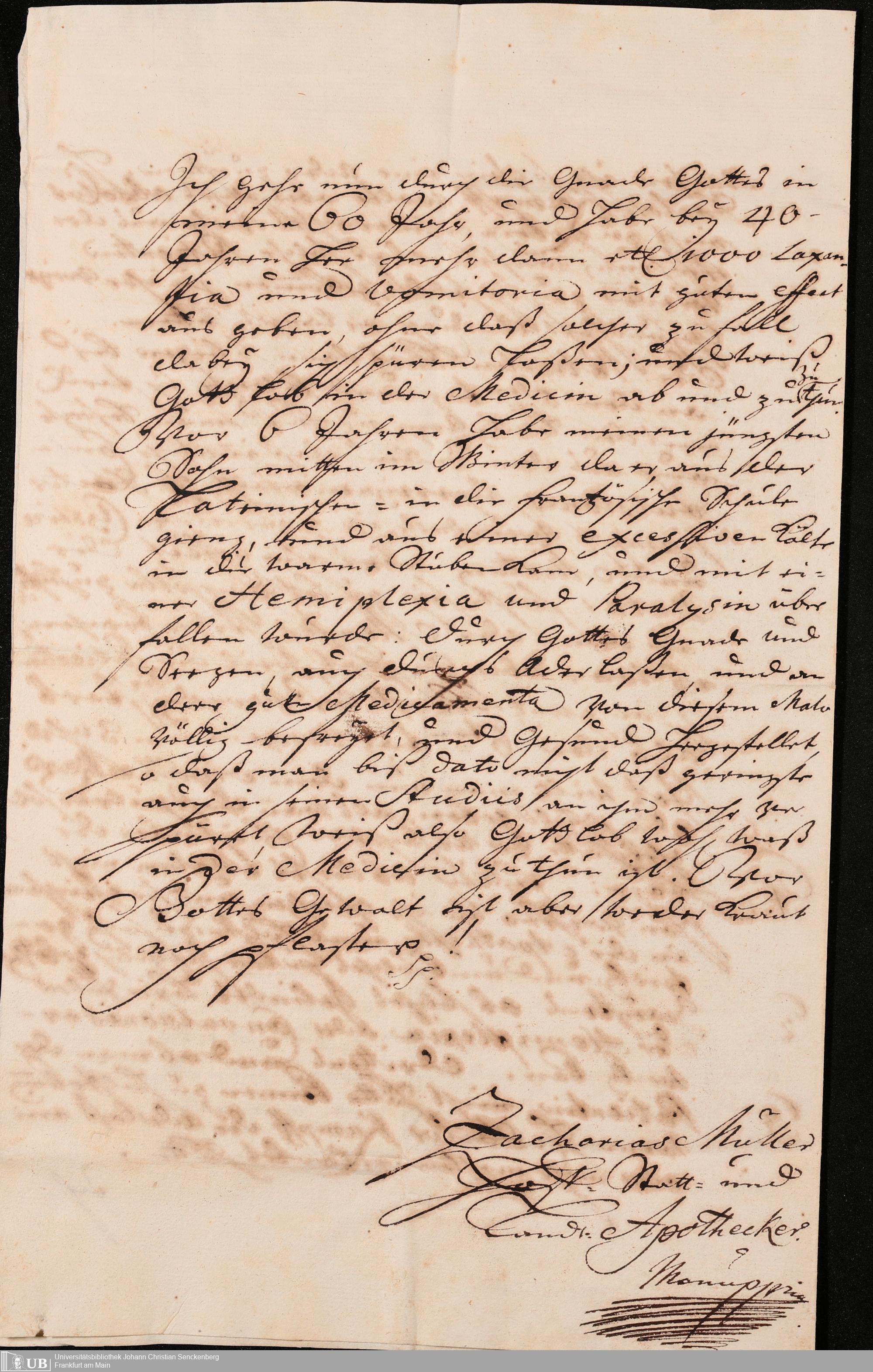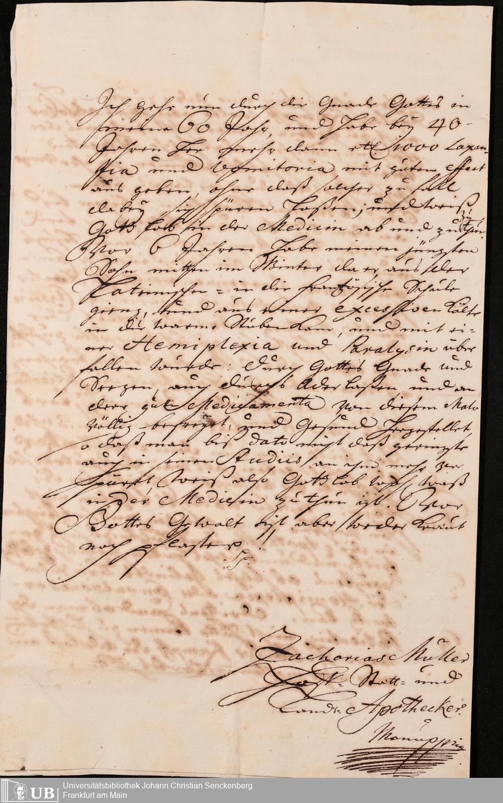 Na 31 Nachlass Johann Christian Senckenberg, 252 - Gutachten für Apotheker Müller