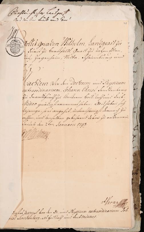 Na 31 Nachlass Johann Christian Senckenberg, 253 - Ernennung Senckenbergs zum Hessen-Casselischen Hofrat und Leibarzt