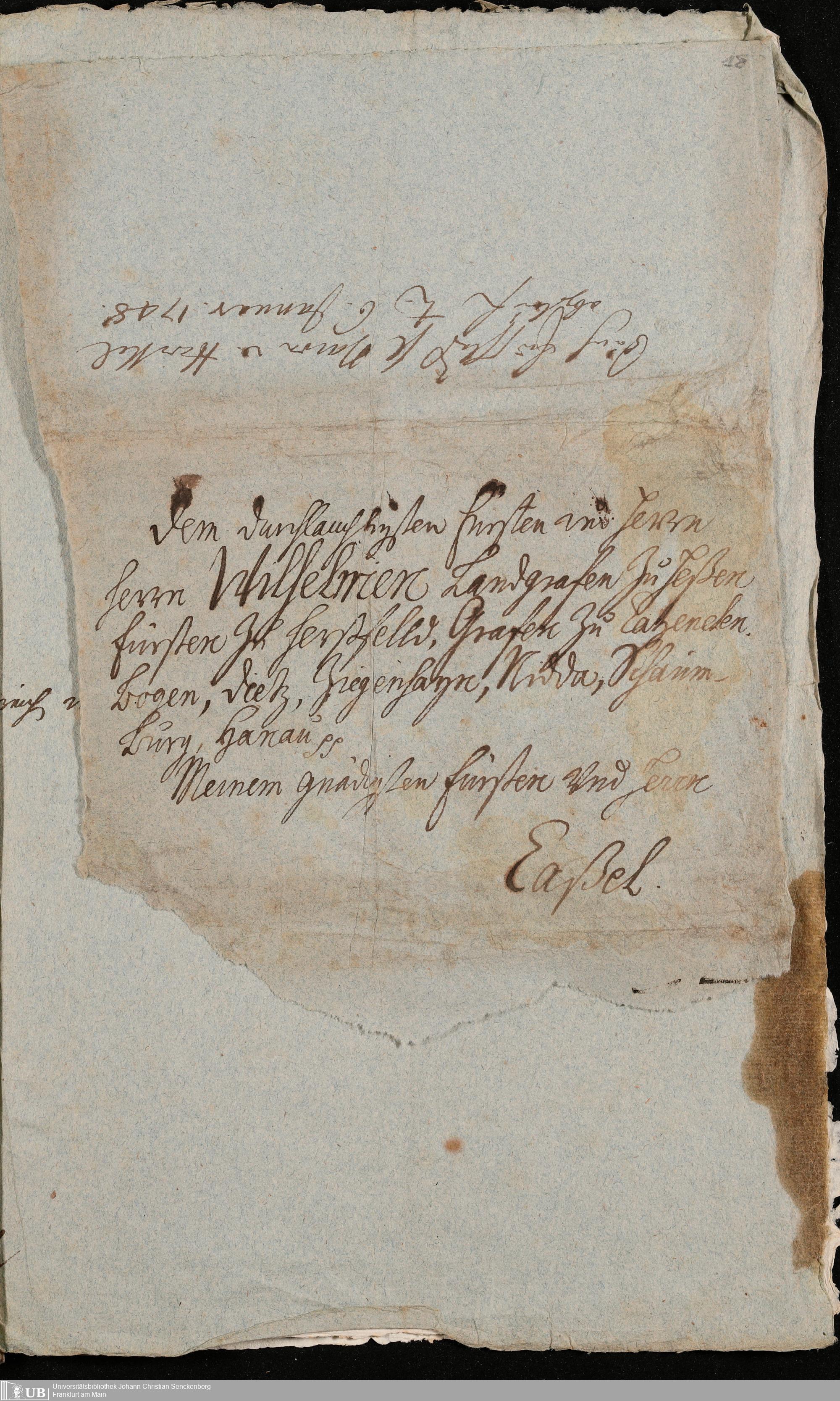 Na 31 Nachlass Johann Christian Senckenberg, 253 - Ernennung Senckenbergs zum Hessen-Casselischen Hofrat und Leibarzt