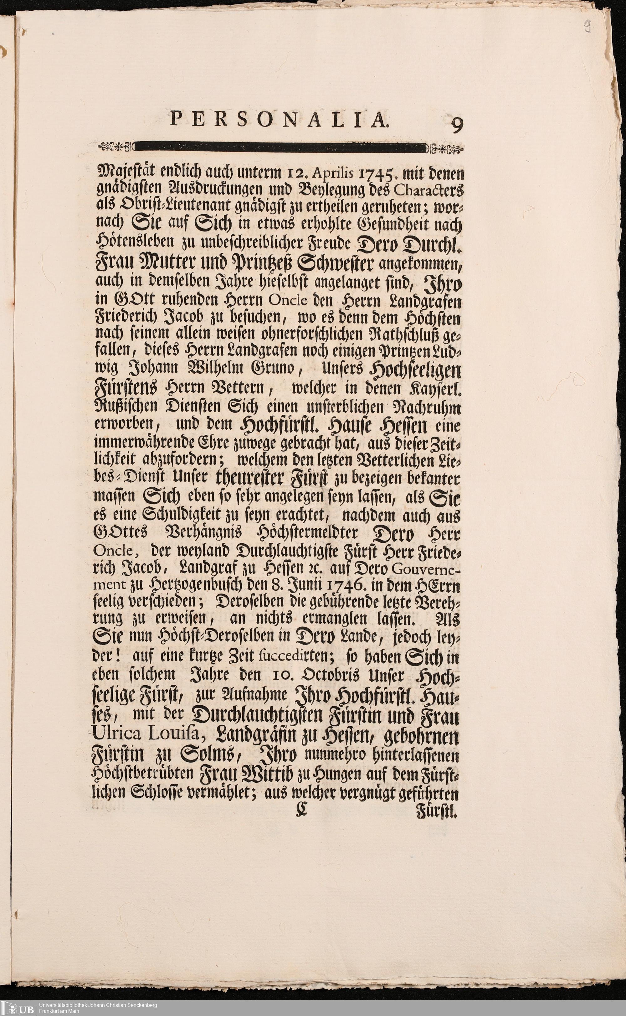 Na 31 Nachlass Johann Christian Senckenberg, 255 - Medizinische Notizen zum Landgrafen von Hessen-Homburg