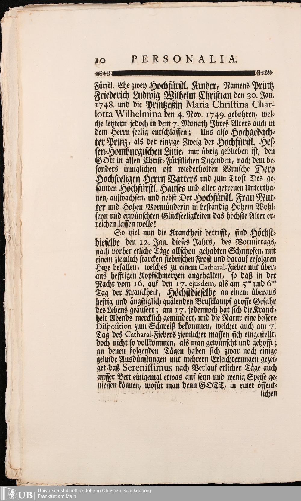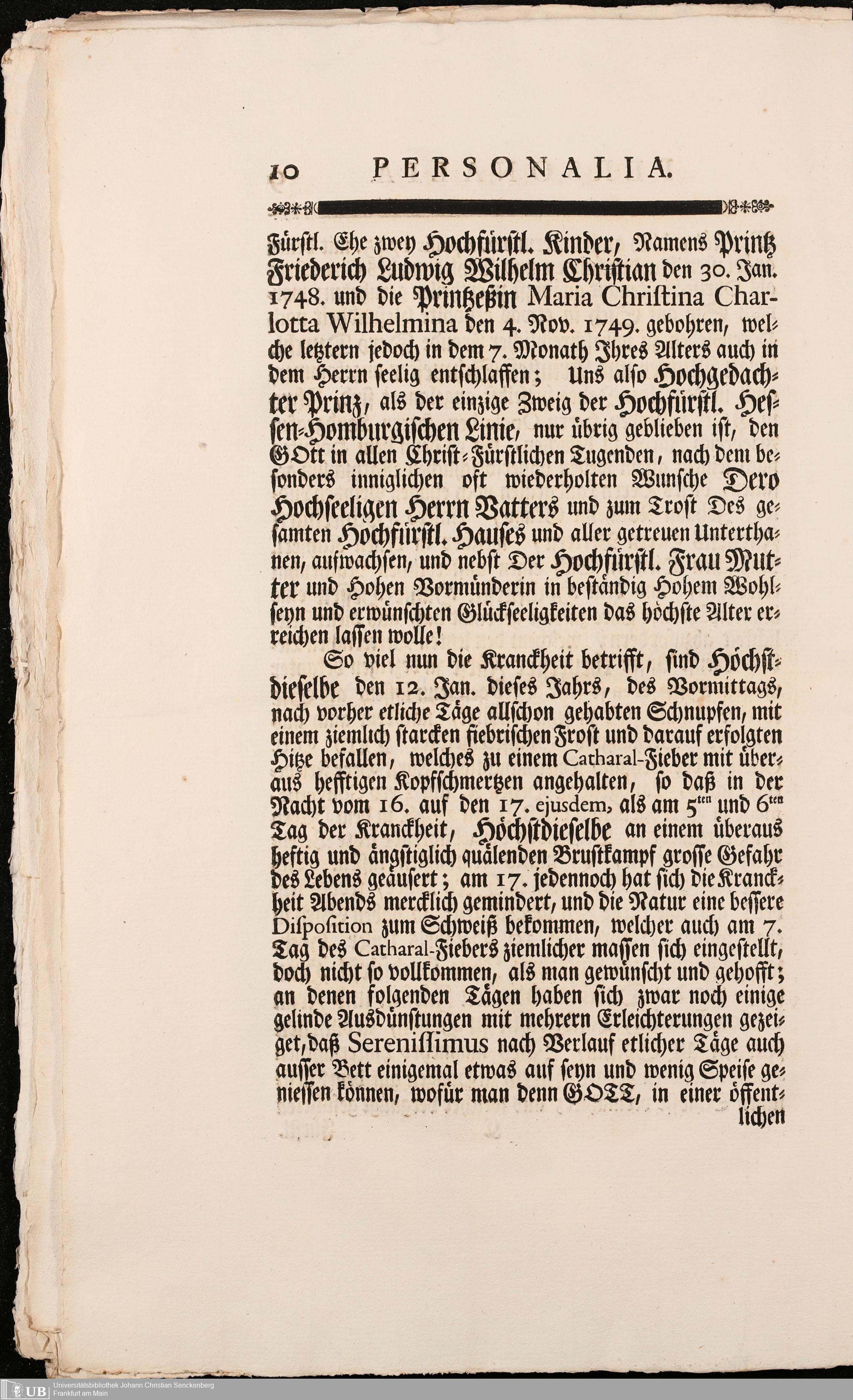 Na 31 Nachlass Johann Christian Senckenberg, 255 - Medizinische Notizen zum Landgrafen von Hessen-Homburg