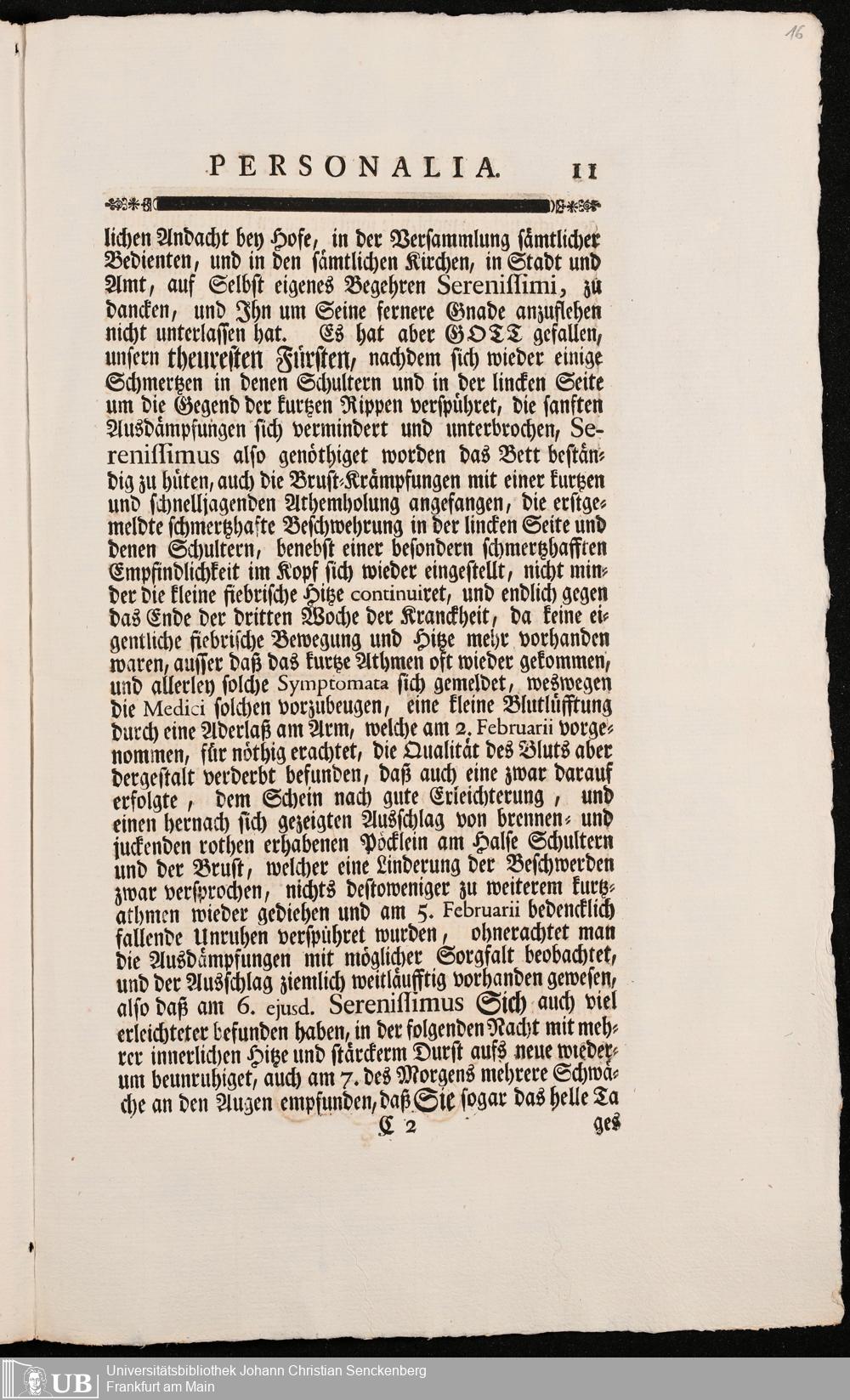 Na 31 Nachlass Johann Christian Senckenberg, 255 - Medizinische Notizen zum Landgrafen von Hessen-Homburg