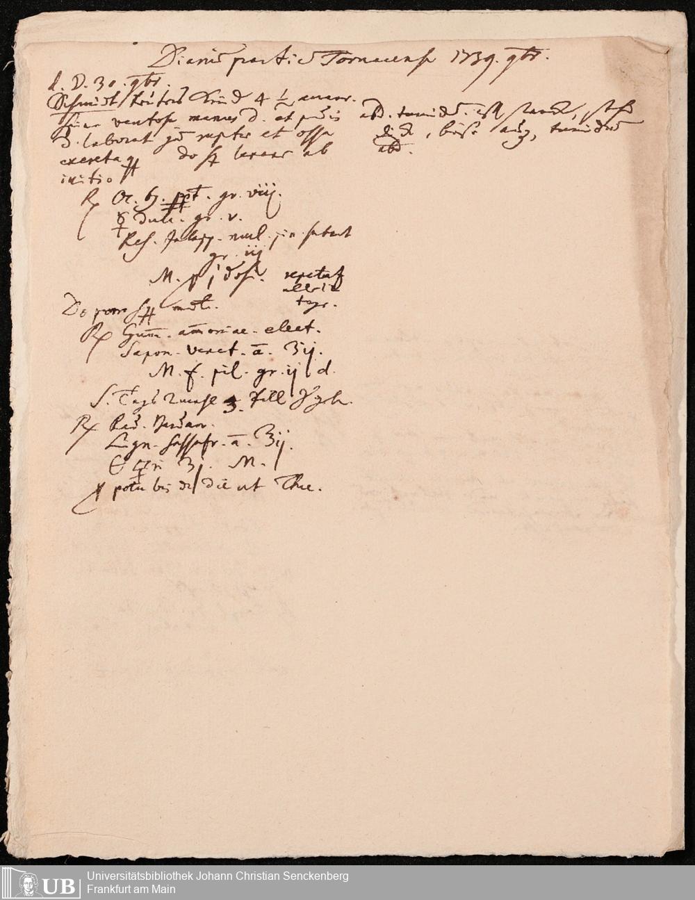 Na 31 Nachlass Johann Christian Senckenberg, 255 - Medizinische Notizen zum Landgrafen von Hessen-Homburg