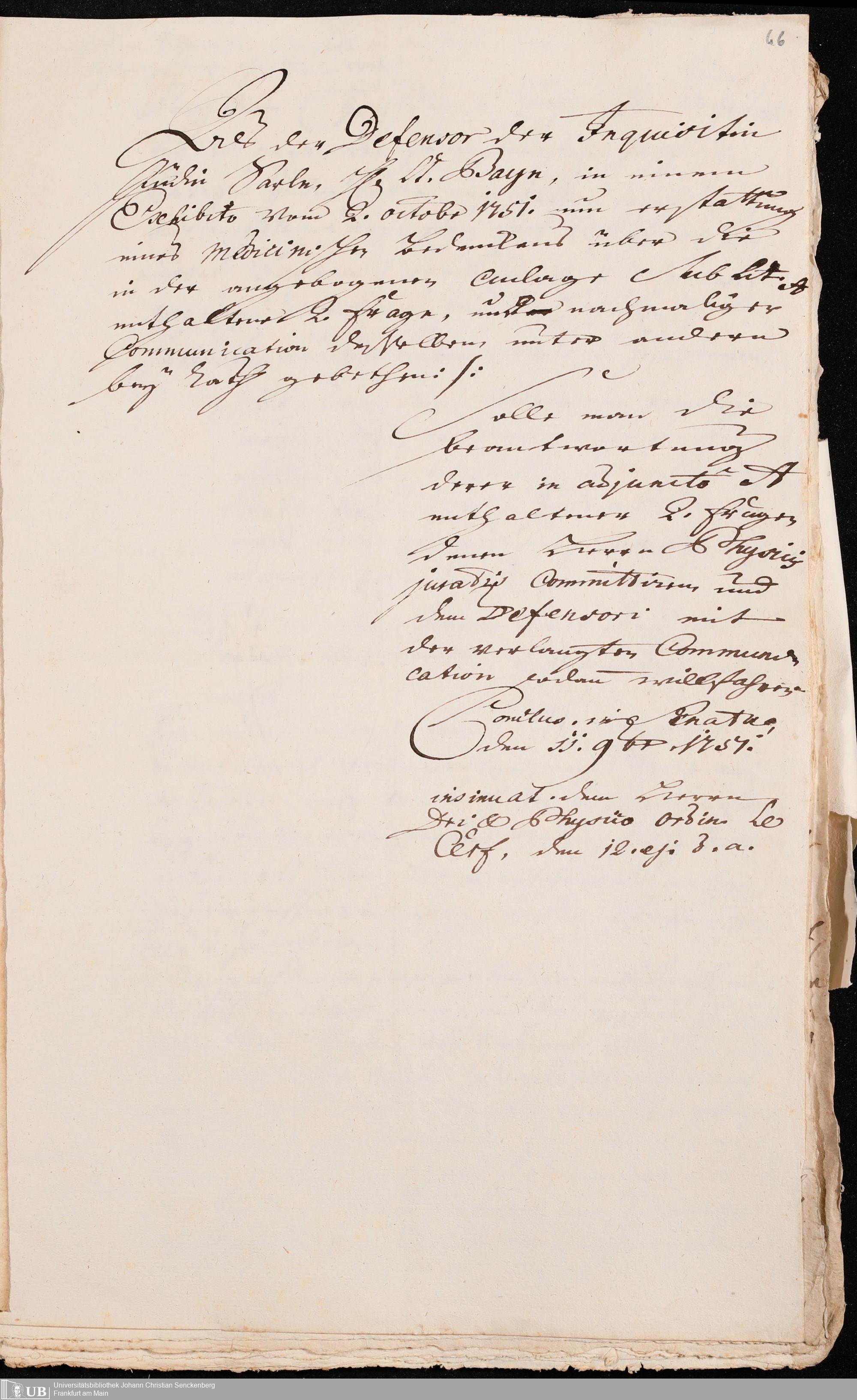 Na 31 Nachlass Johann Christian Senckenberg, 257 - Physikatsbericht 1750/51