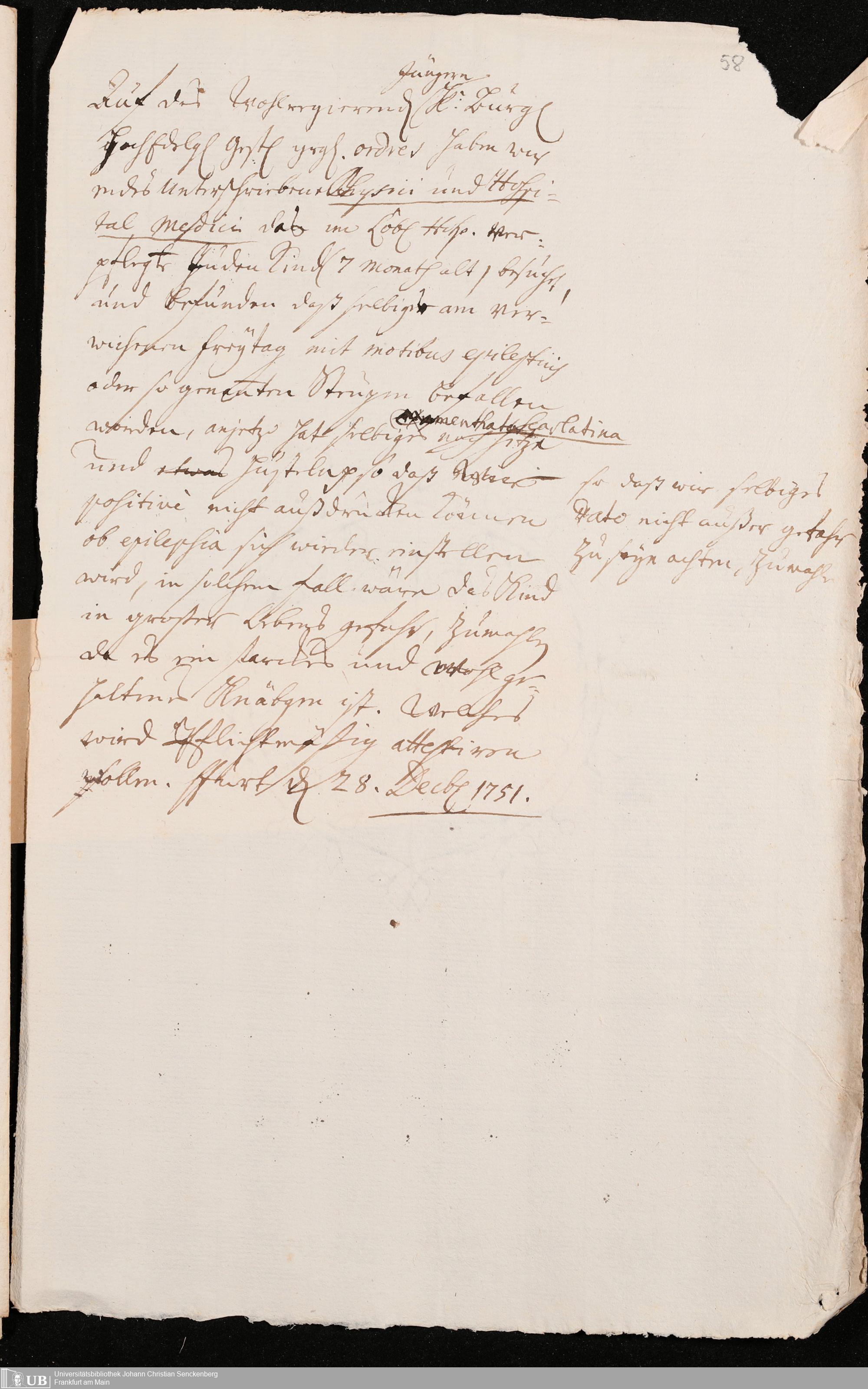 Na 31 Nachlass Johann Christian Senckenberg, 257 - Physikatsbericht 1750/51