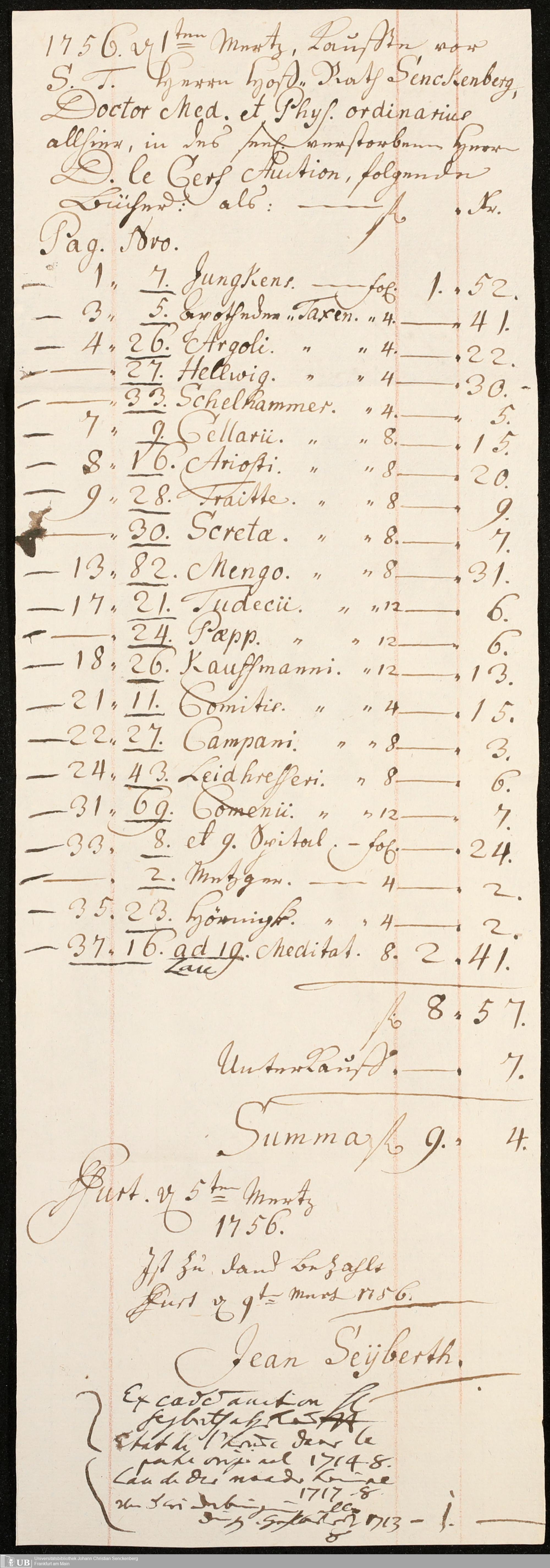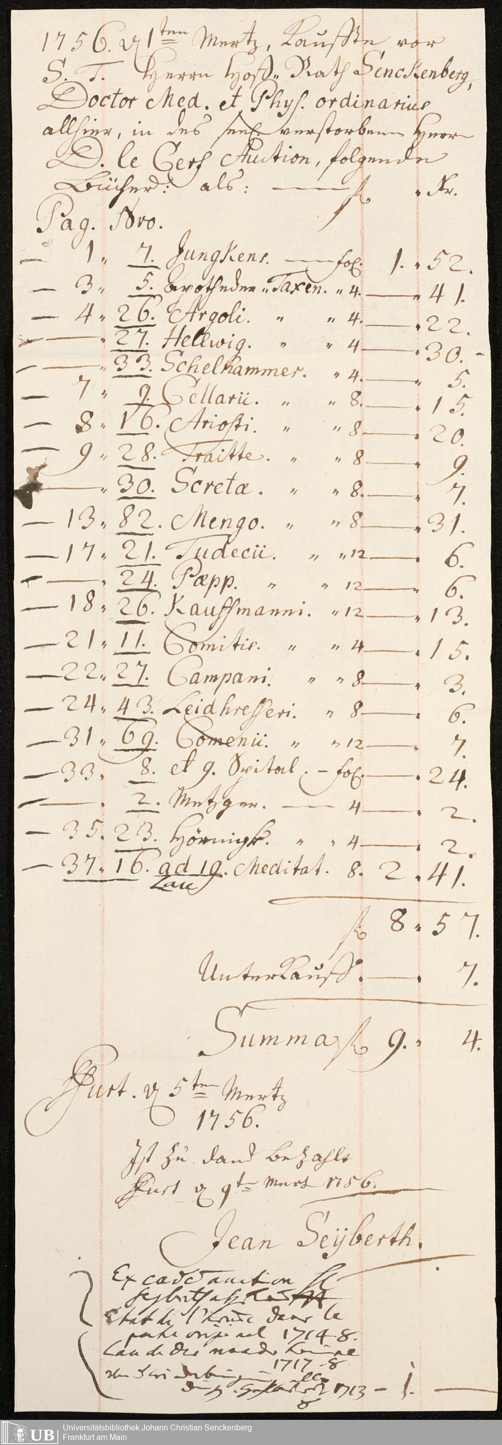 Na 31 Nachlass Johann Christian Senckenberg, 211 - Bücherrechnungen, Quittungen, Kontoauszüge I