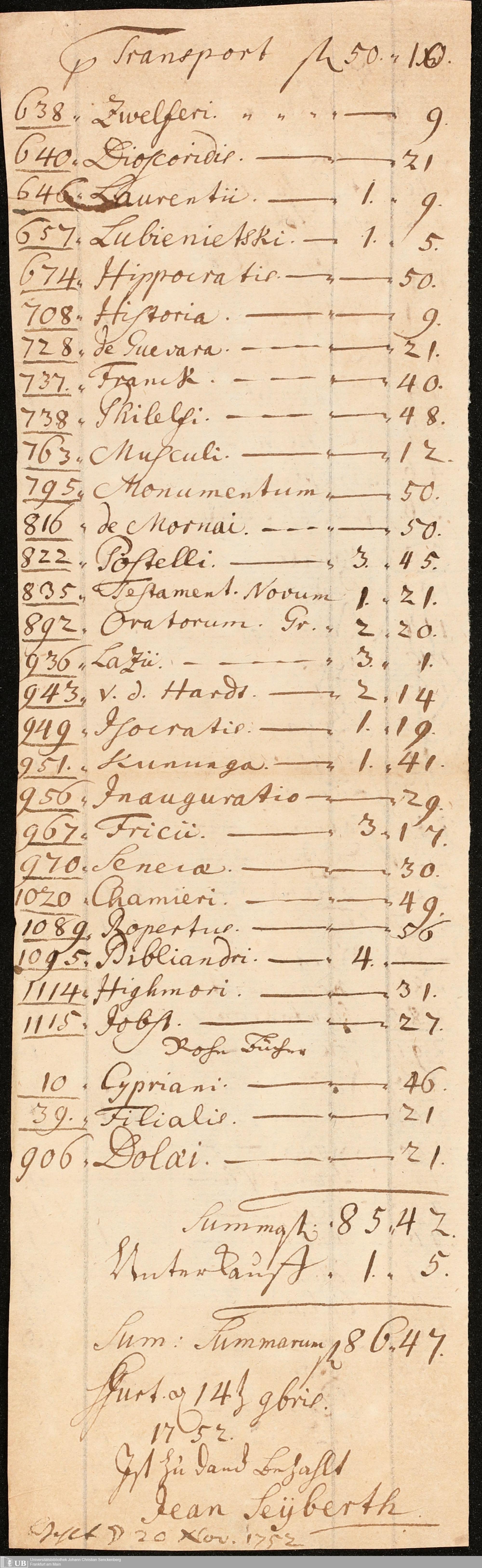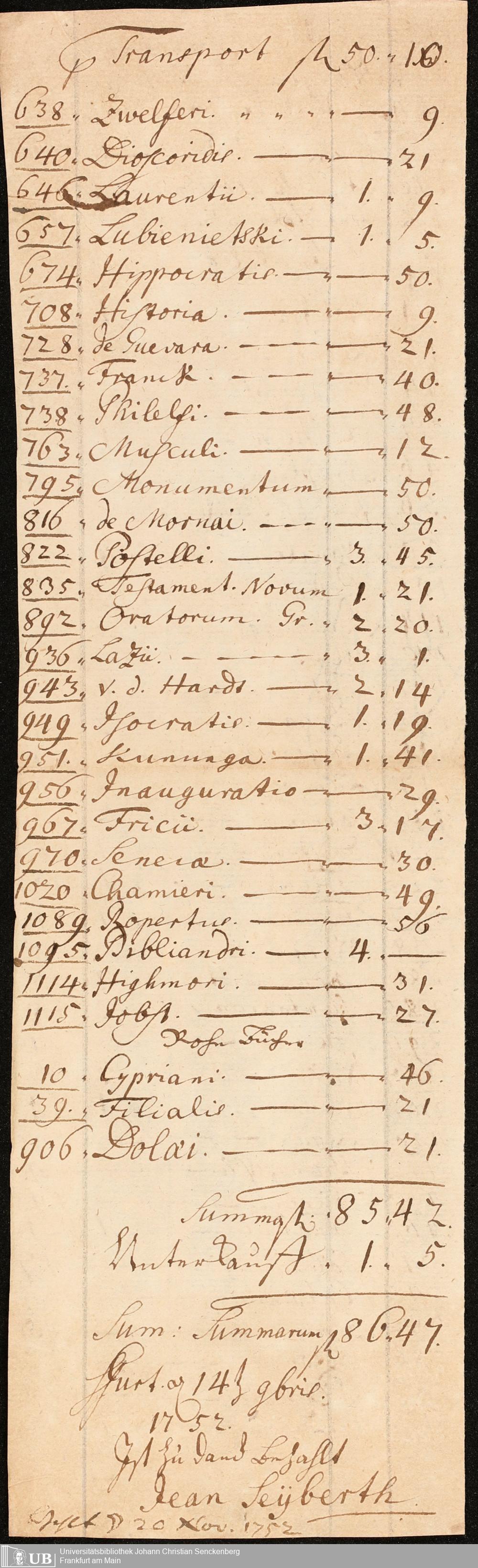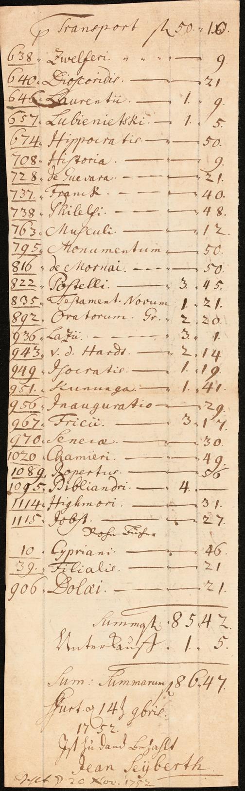 Na 31 Nachlass Johann Christian Senckenberg, 211 - Bücherrechnungen, Quittungen, Kontoauszüge I