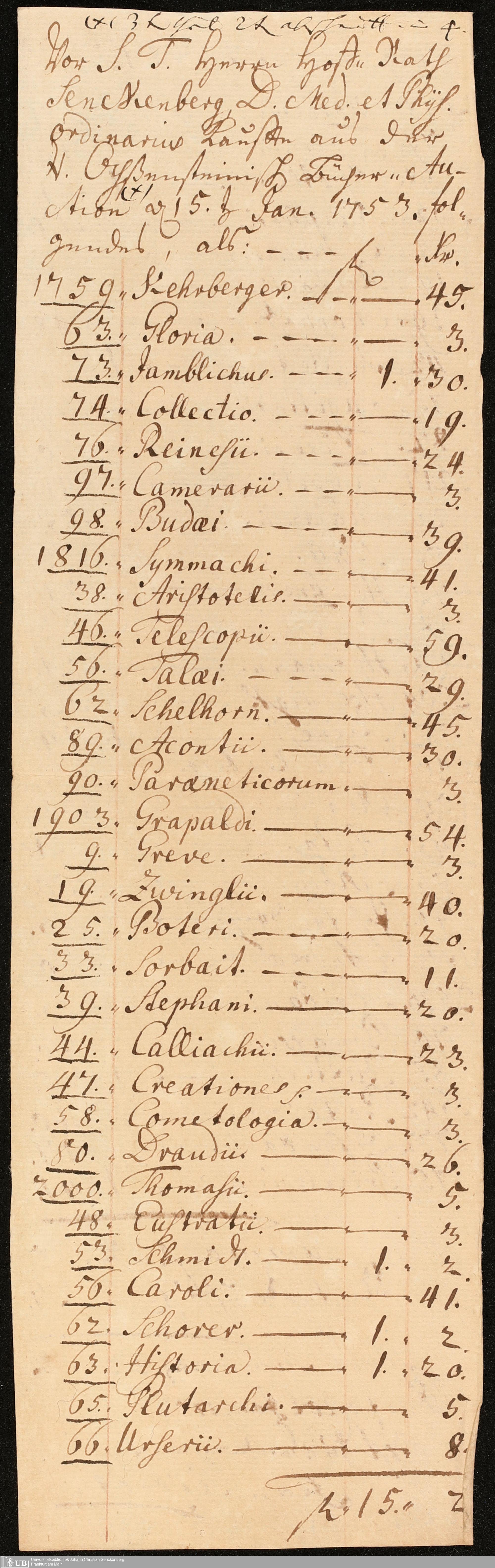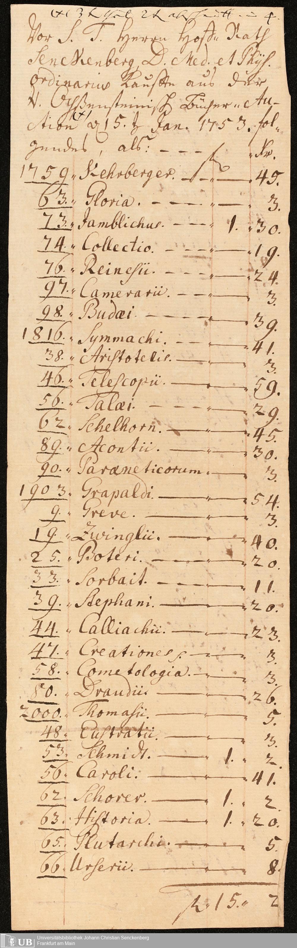 Na 31 Nachlass Johann Christian Senckenberg, 211 - Bücherrechnungen, Quittungen, Kontoauszüge I