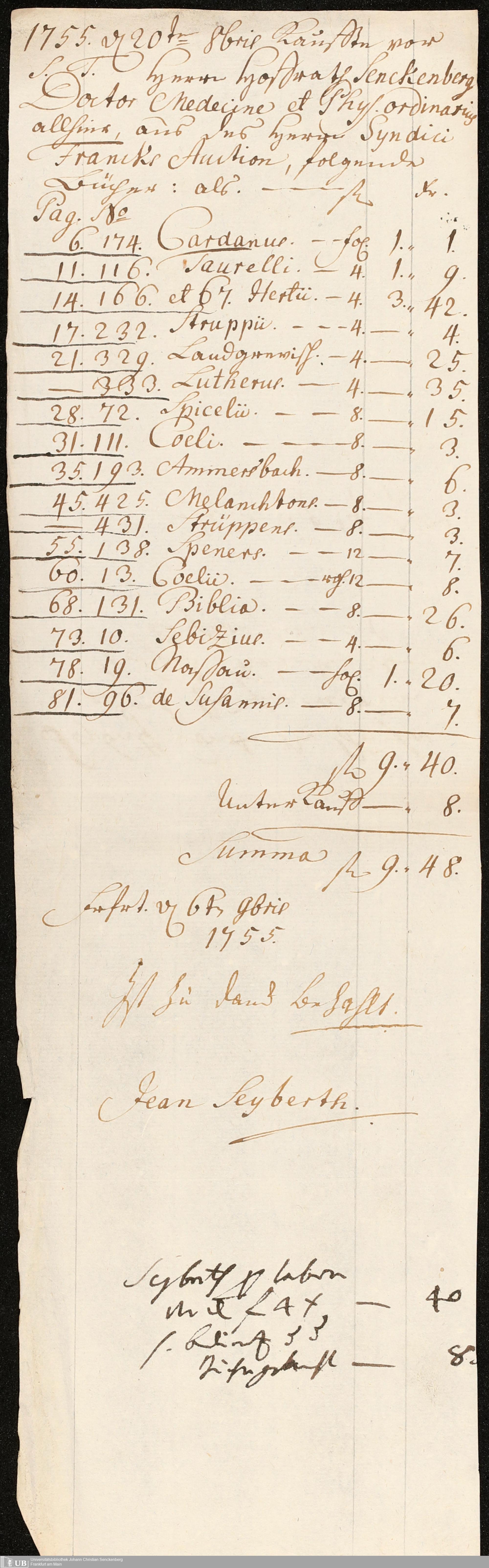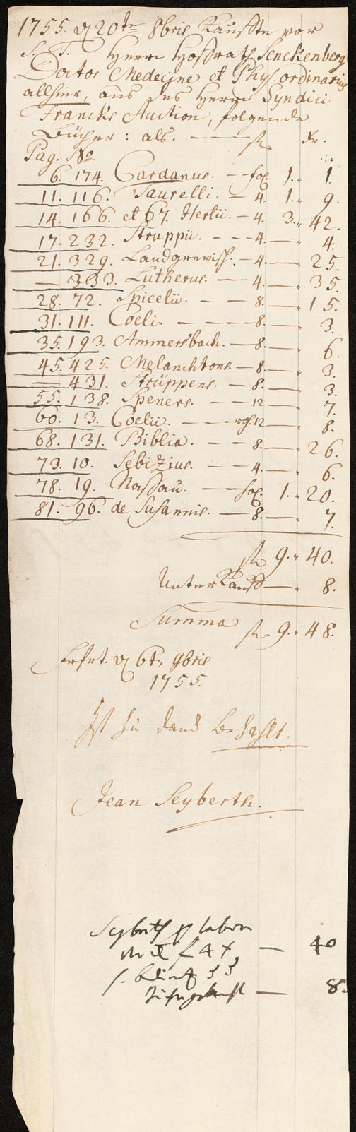 Nachlass Johann Christian Senckenberg