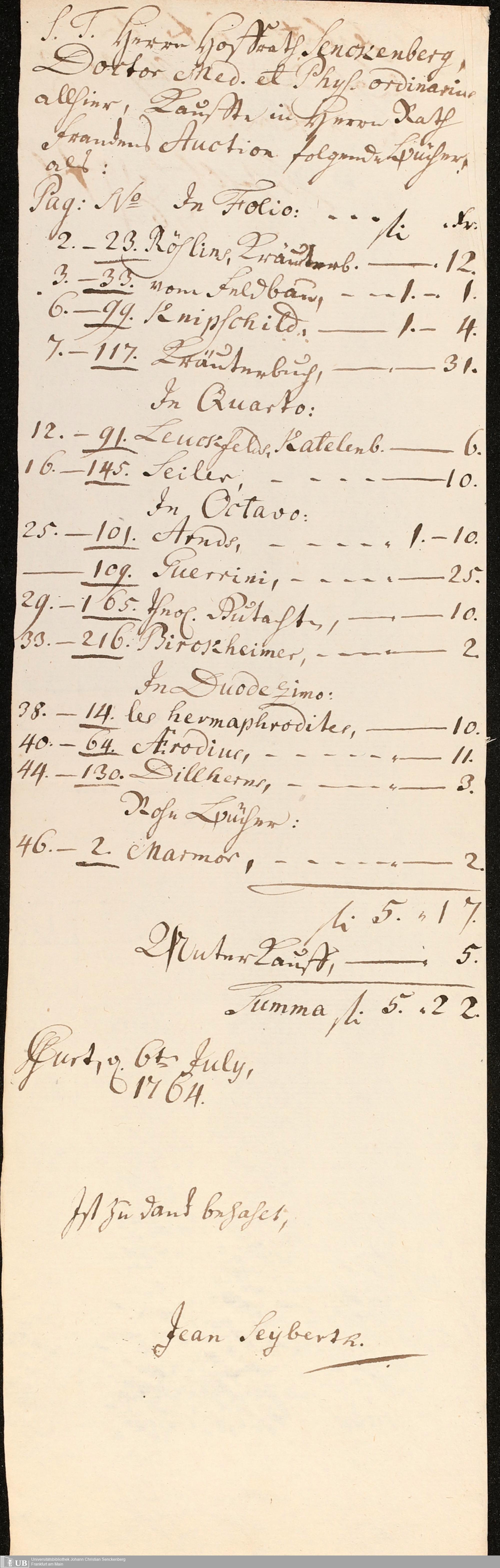 Nachlass Johann Christian Senckenberg