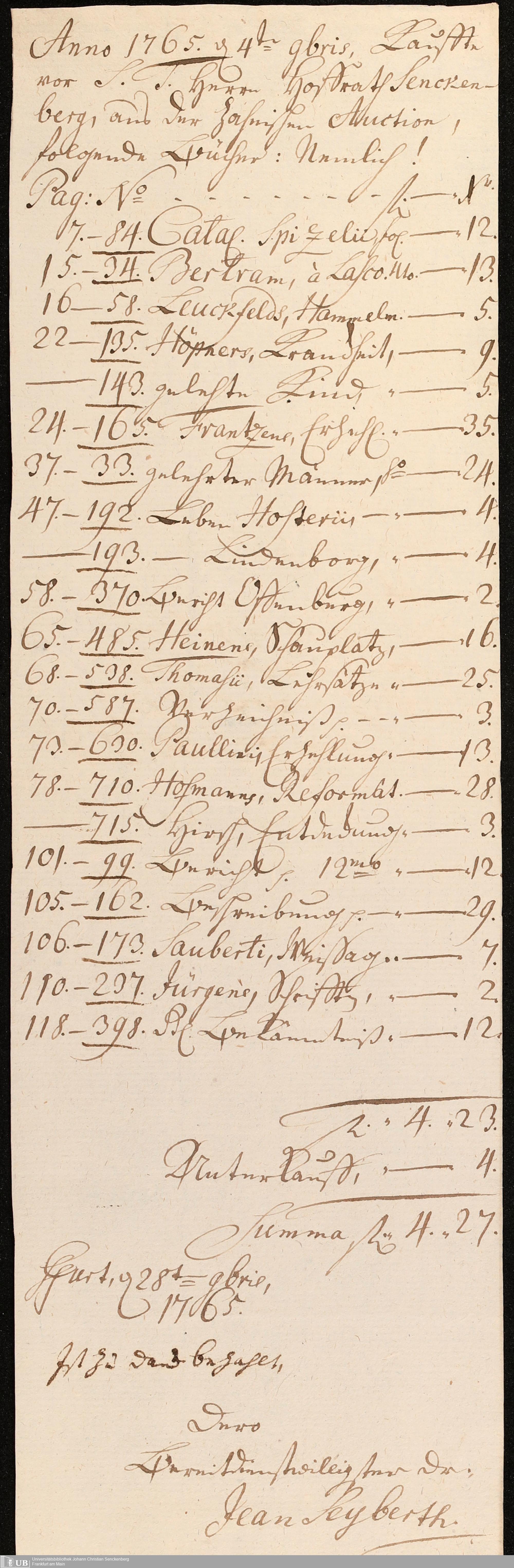 Nachlass Johann Christian Senckenberg