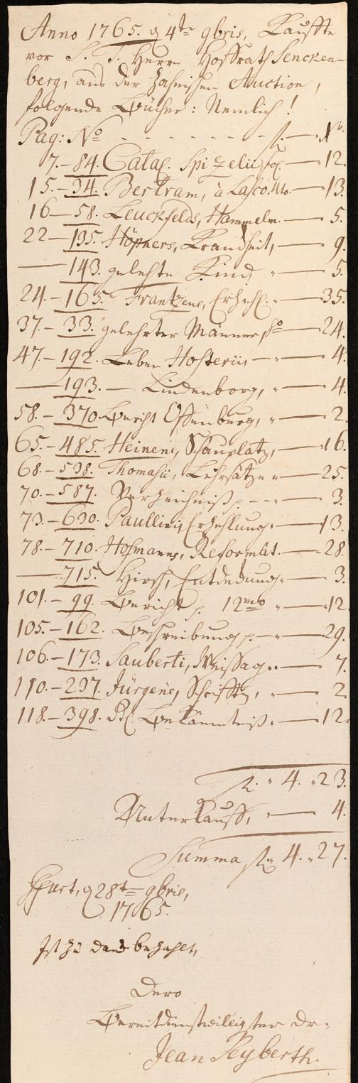 Na 31 Nachlass Johann Christian Senckenberg, 211 - Bücherrechnungen, Quittungen, Kontoauszüge I
