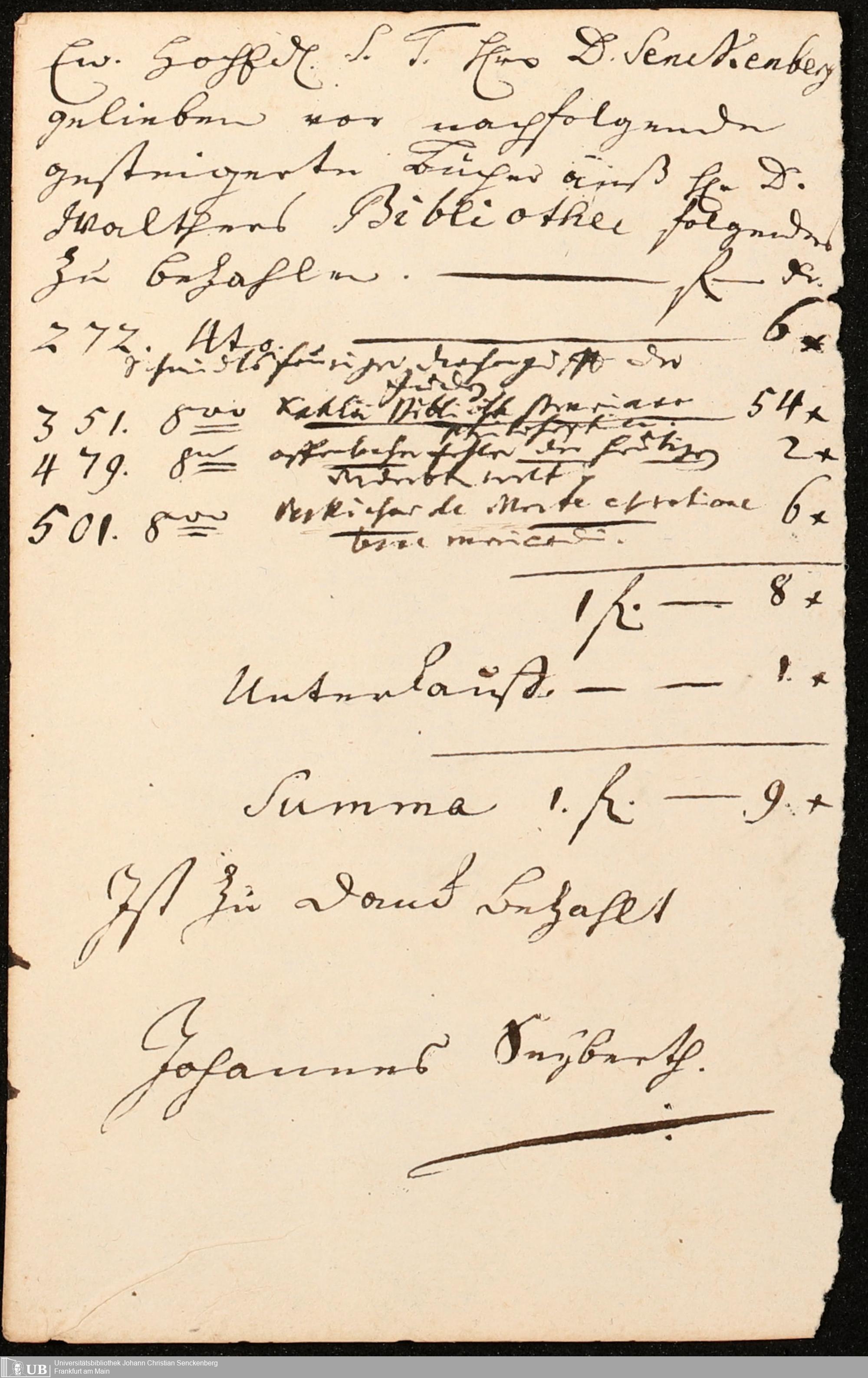 Na 31 Nachlass Johann Christian Senckenberg, 211 - Bücherrechnungen, Quittungen, Kontoauszüge I