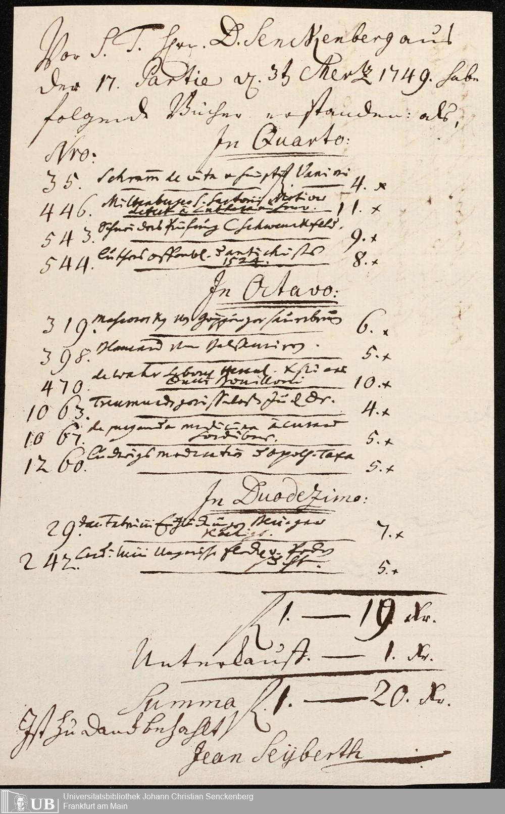 Na 31 Nachlass Johann Christian Senckenberg, 211 - Bücherrechnungen, Quittungen, Kontoauszüge I
