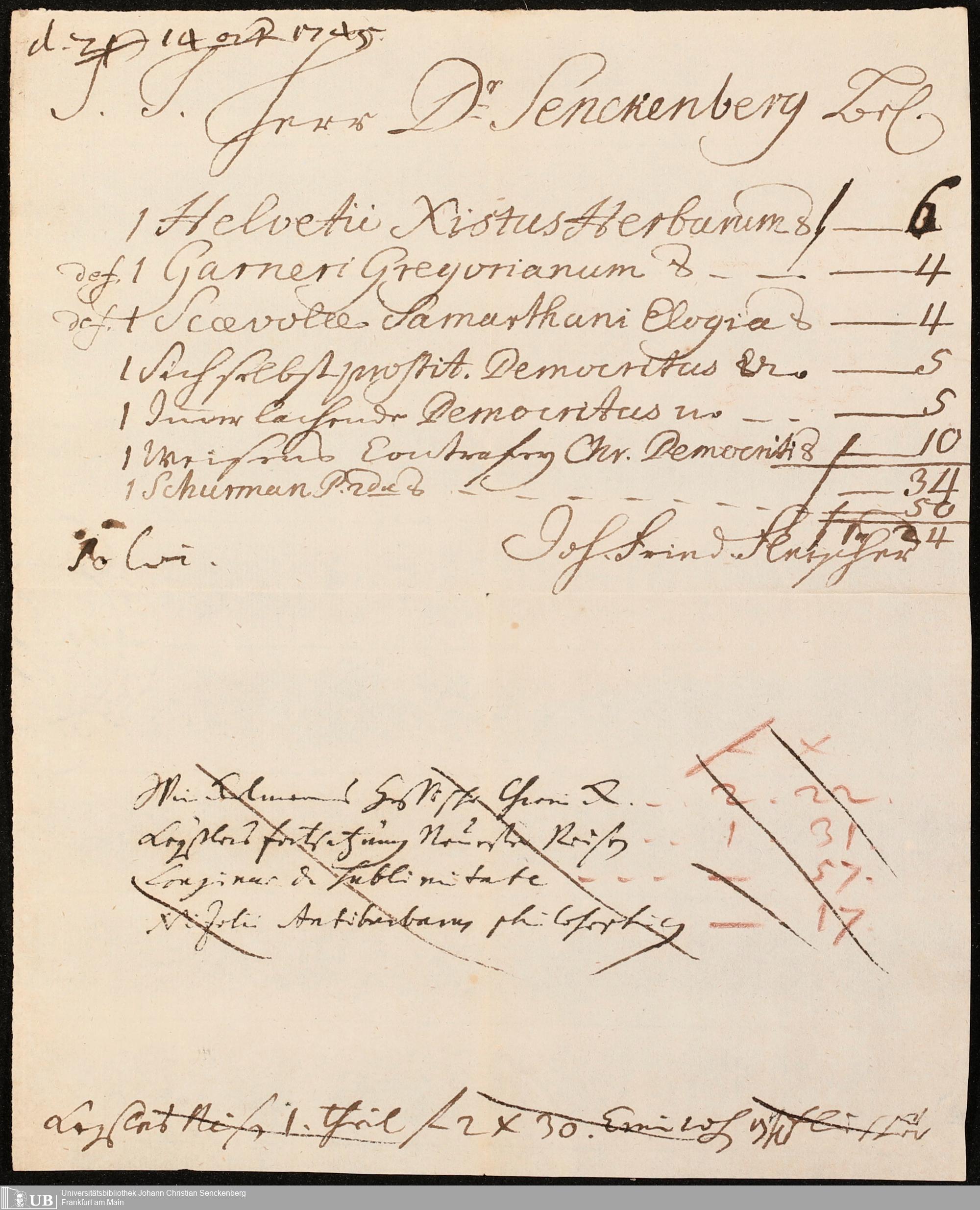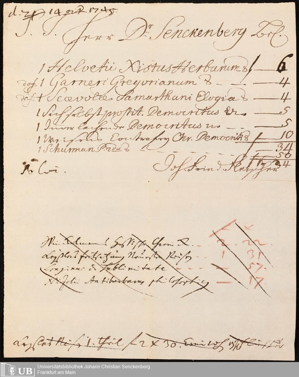 Na 31 Nachlass Johann Christian Senckenberg, 211 - Bücherrechnungen, Quittungen, Kontoauszüge I