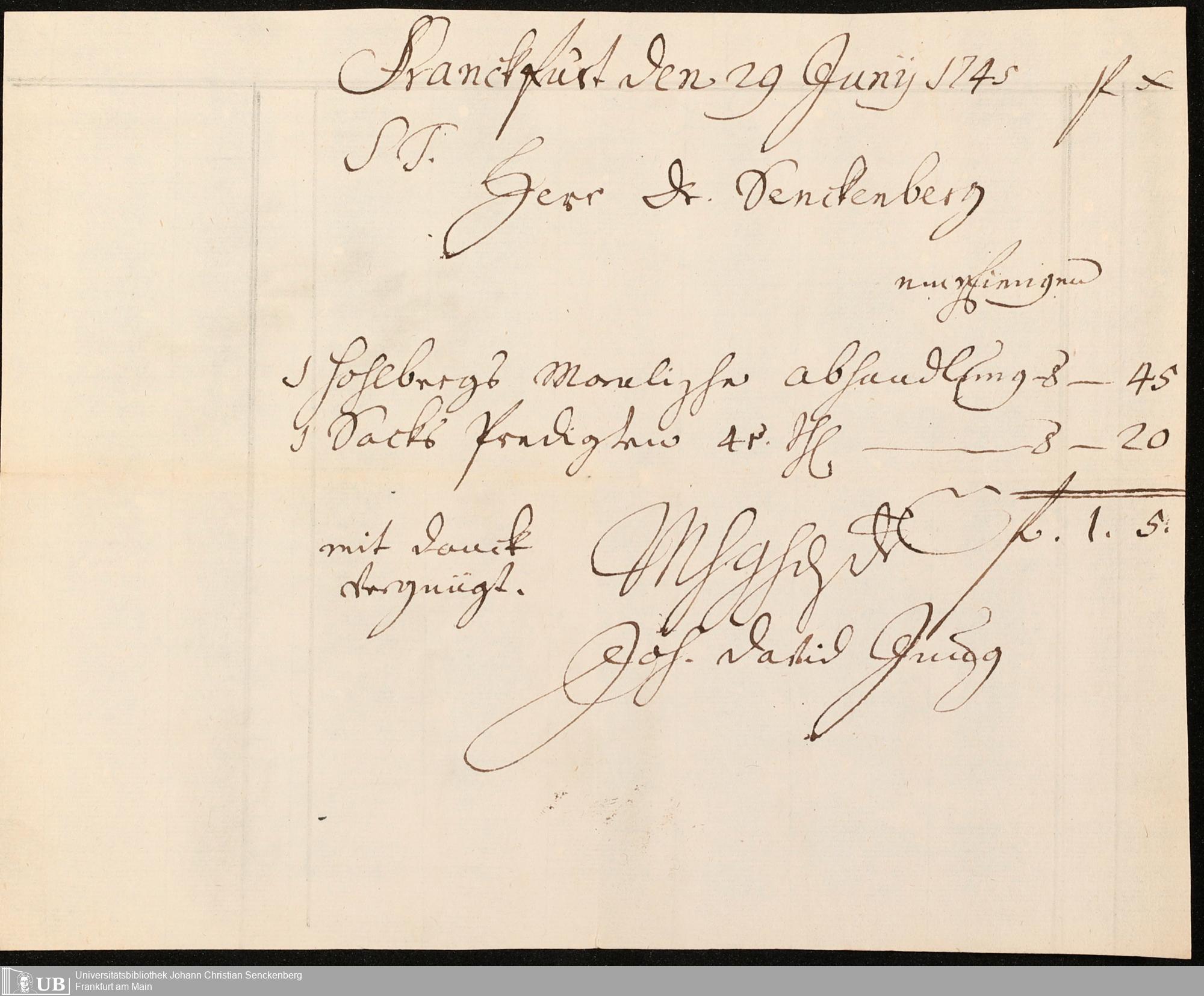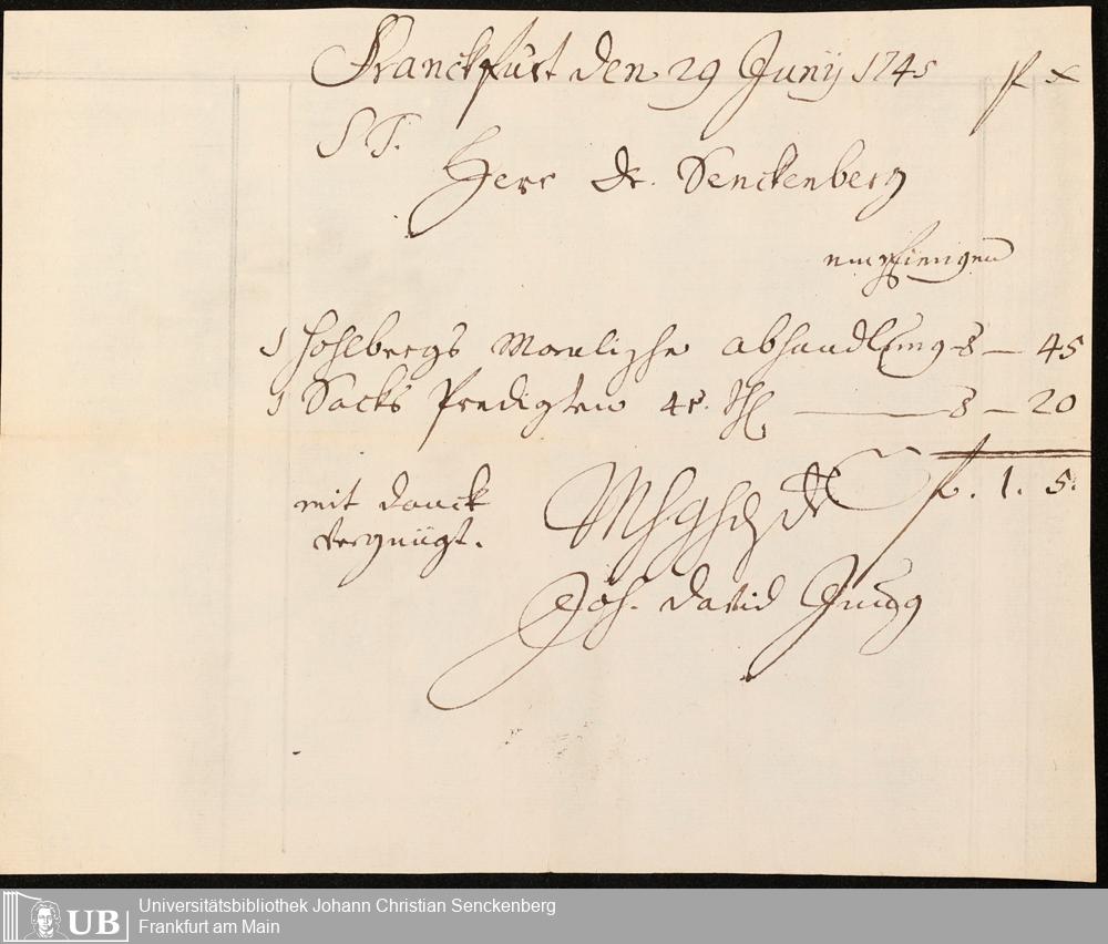 Na 31 Nachlass Johann Christian Senckenberg, 211 - Bücherrechnungen, Quittungen, Kontoauszüge I