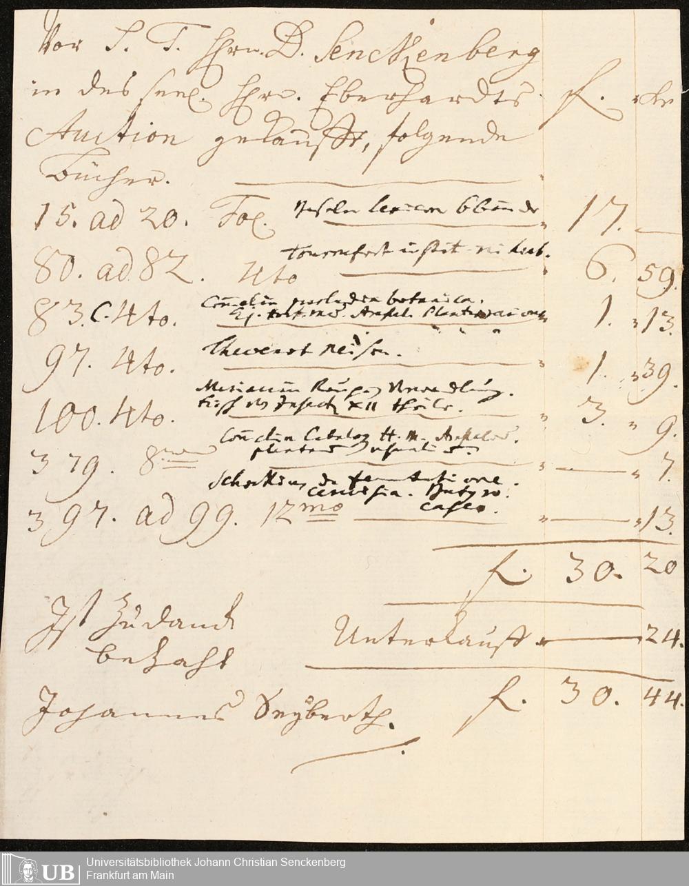 Na 31 Nachlass Johann Christian Senckenberg, 211 - Bücherrechnungen, Quittungen, Kontoauszüge I