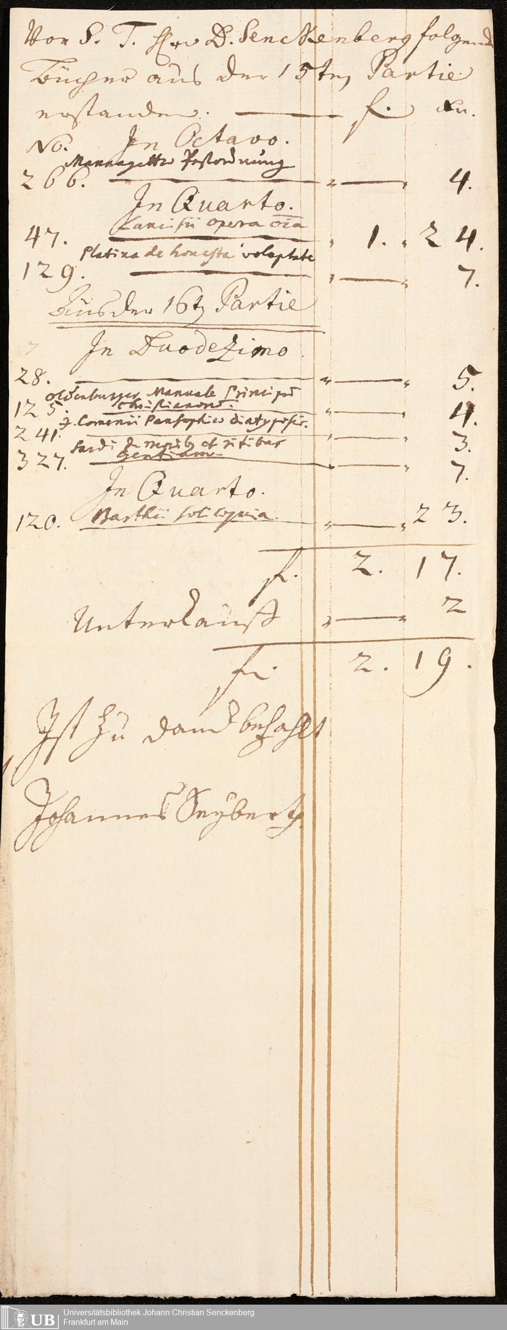 Na 31 Nachlass Johann Christian Senckenberg, 211 - Bücherrechnungen, Quittungen, Kontoauszüge I
