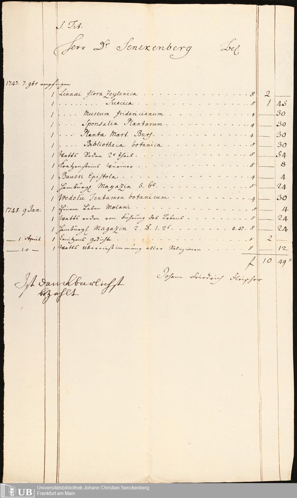 Na 31 Nachlass Johann Christian Senckenberg, 211 - Bücherrechnungen, Quittungen, Kontoauszüge I