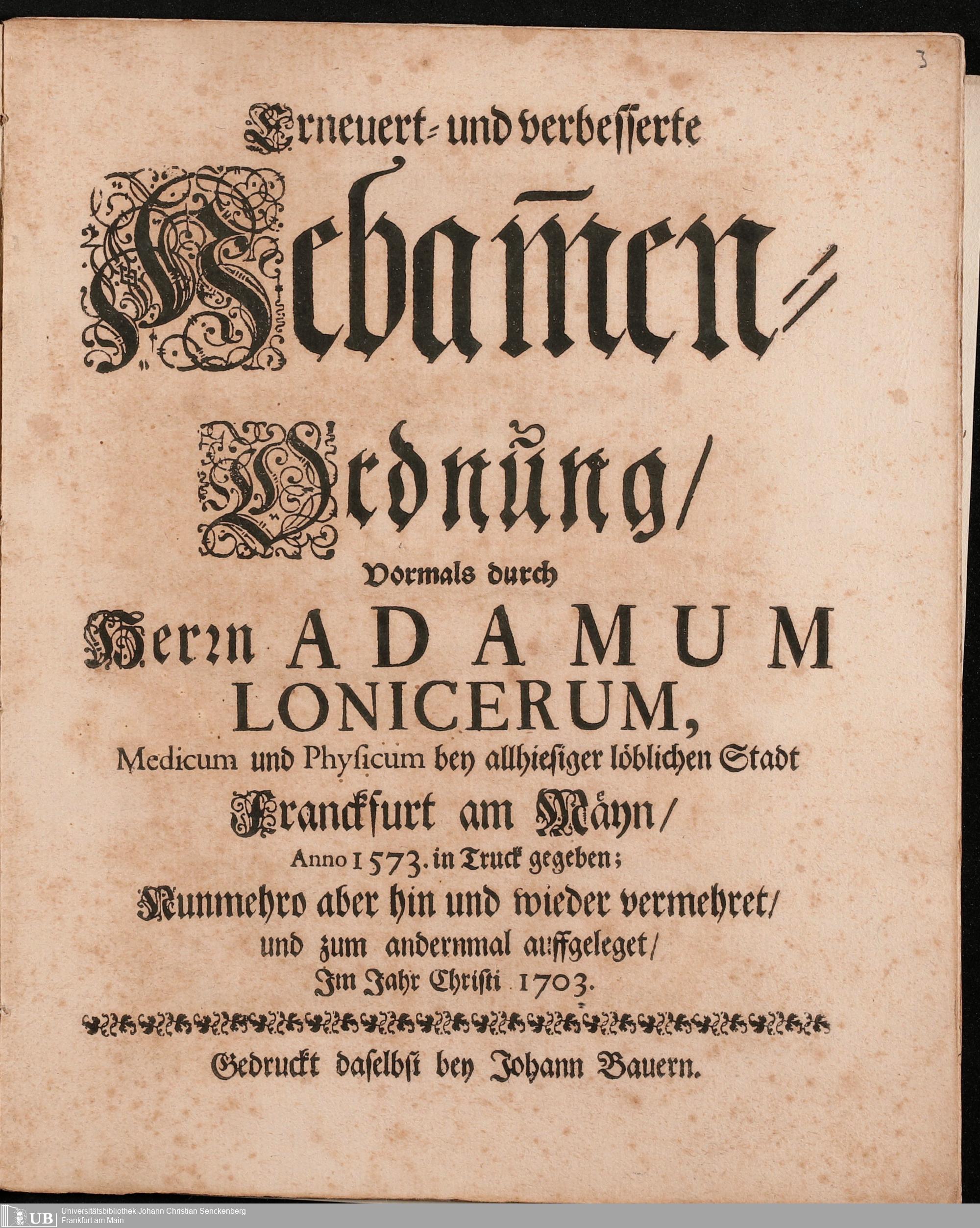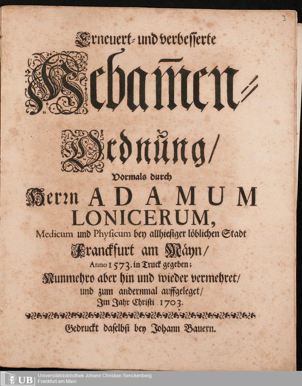 Na 31 Nachlass Johann Christian Senckenberg, 296 - Hebammen-Ordnung von Adam Lonuicerus