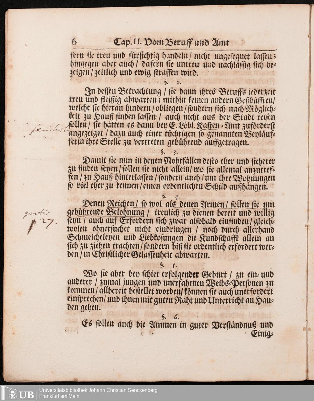 Na 31 Nachlass Johann Christian Senckenberg, 296 - Hebammen-Ordnung von Adam Lonuicerus