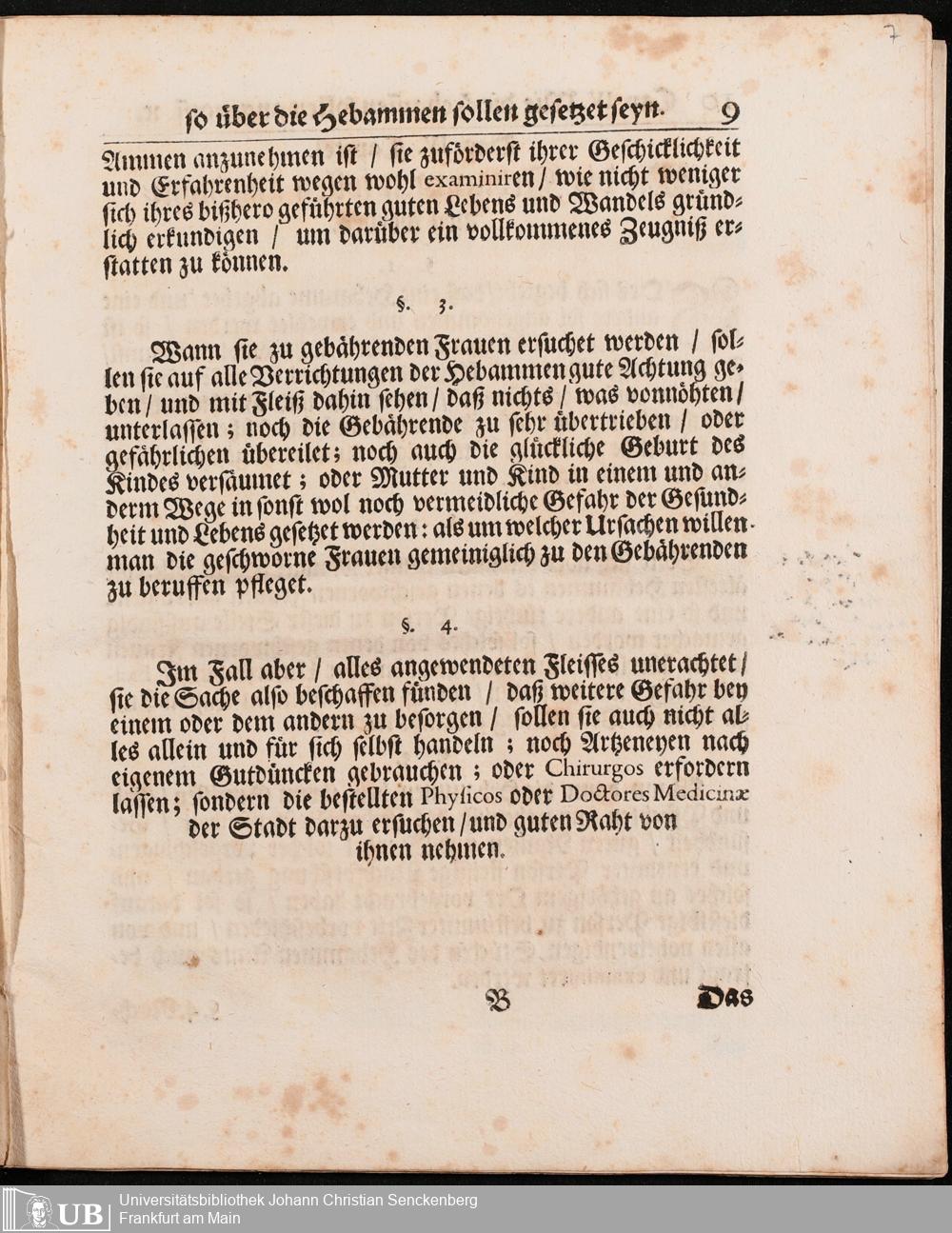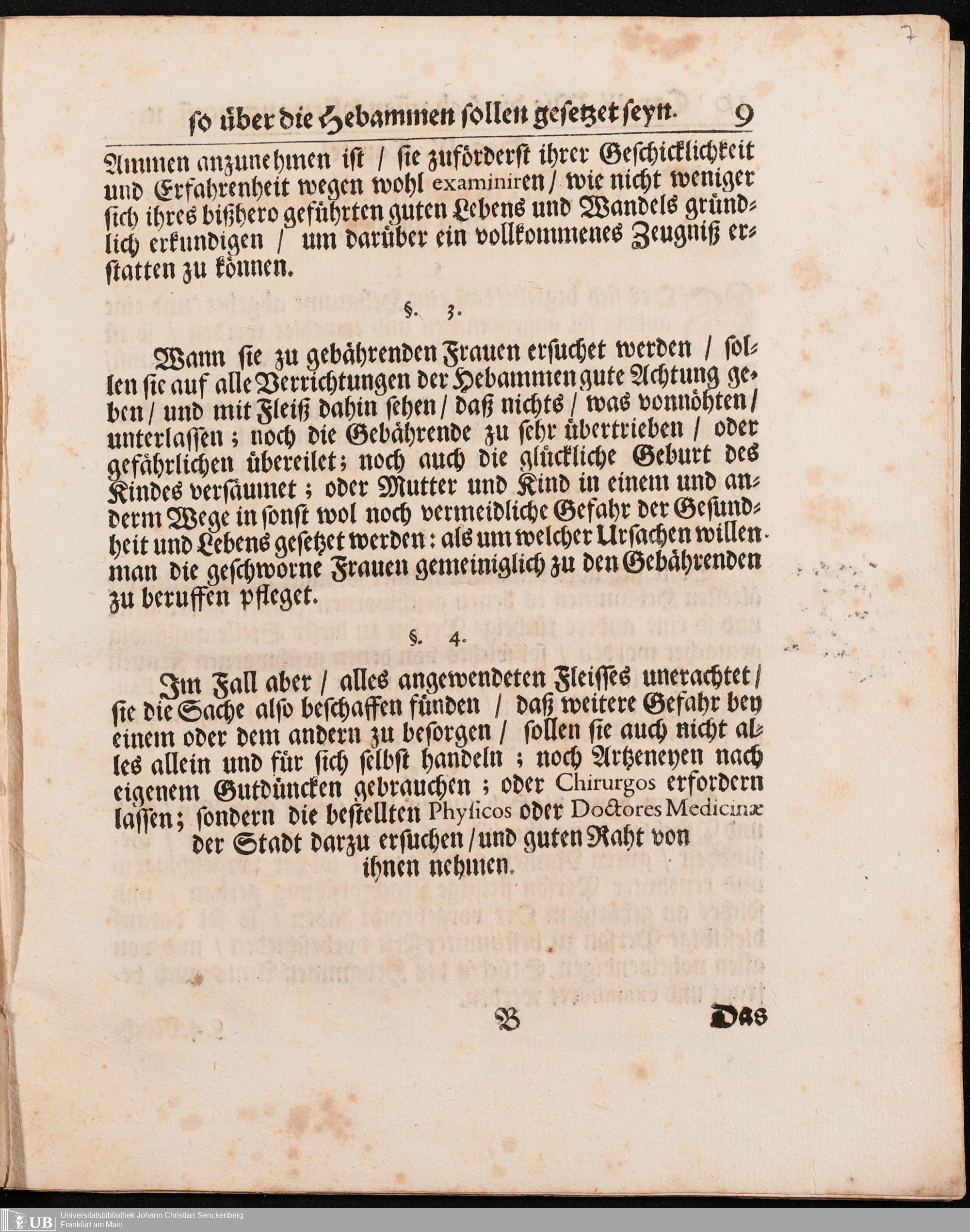 Na 31 Nachlass Johann Christian Senckenberg, 296 - Hebammen-Ordnung von Adam Lonuicerus