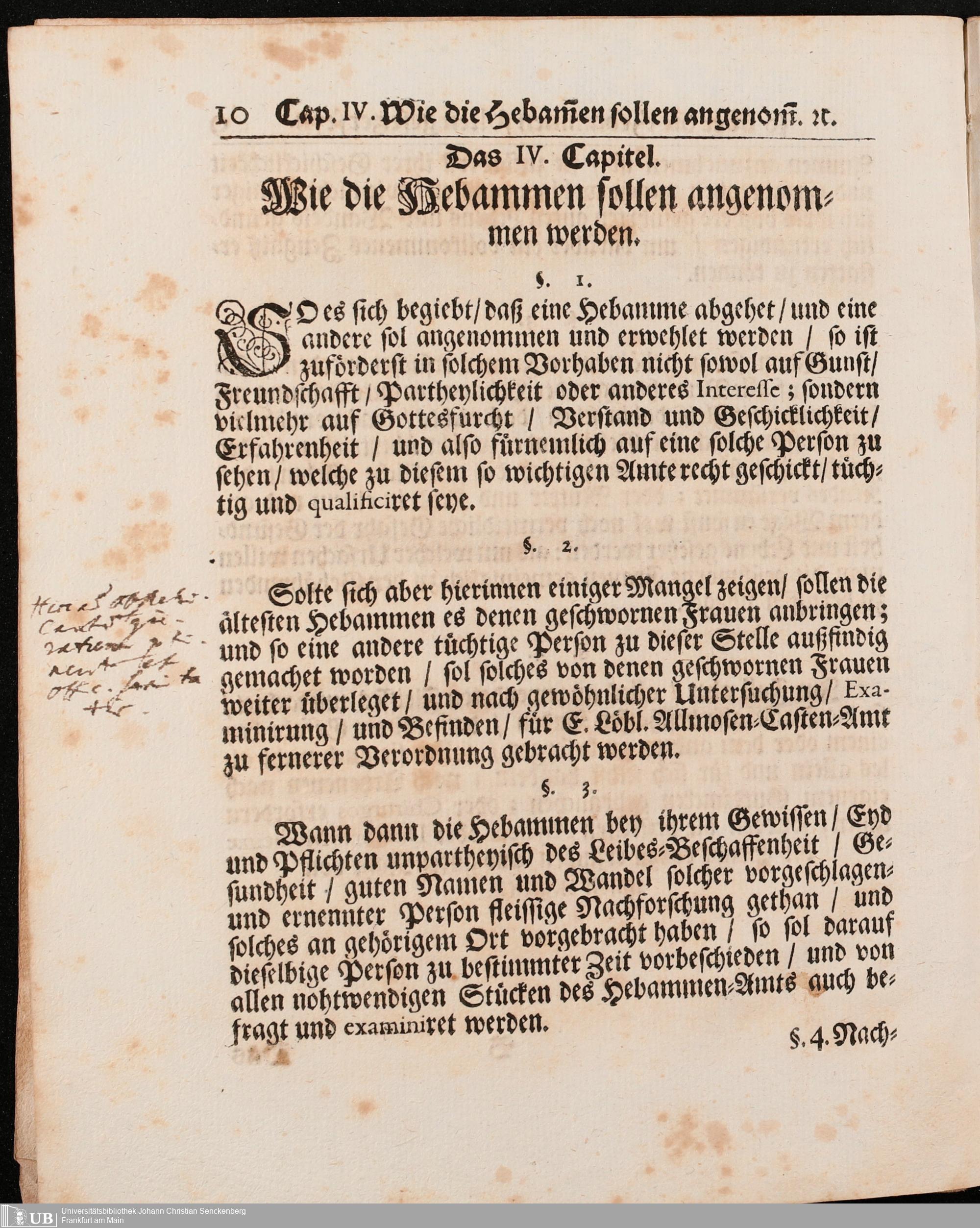 Na 31 Nachlass Johann Christian Senckenberg, 296 - Hebammen-Ordnung von Adam Lonuicerus