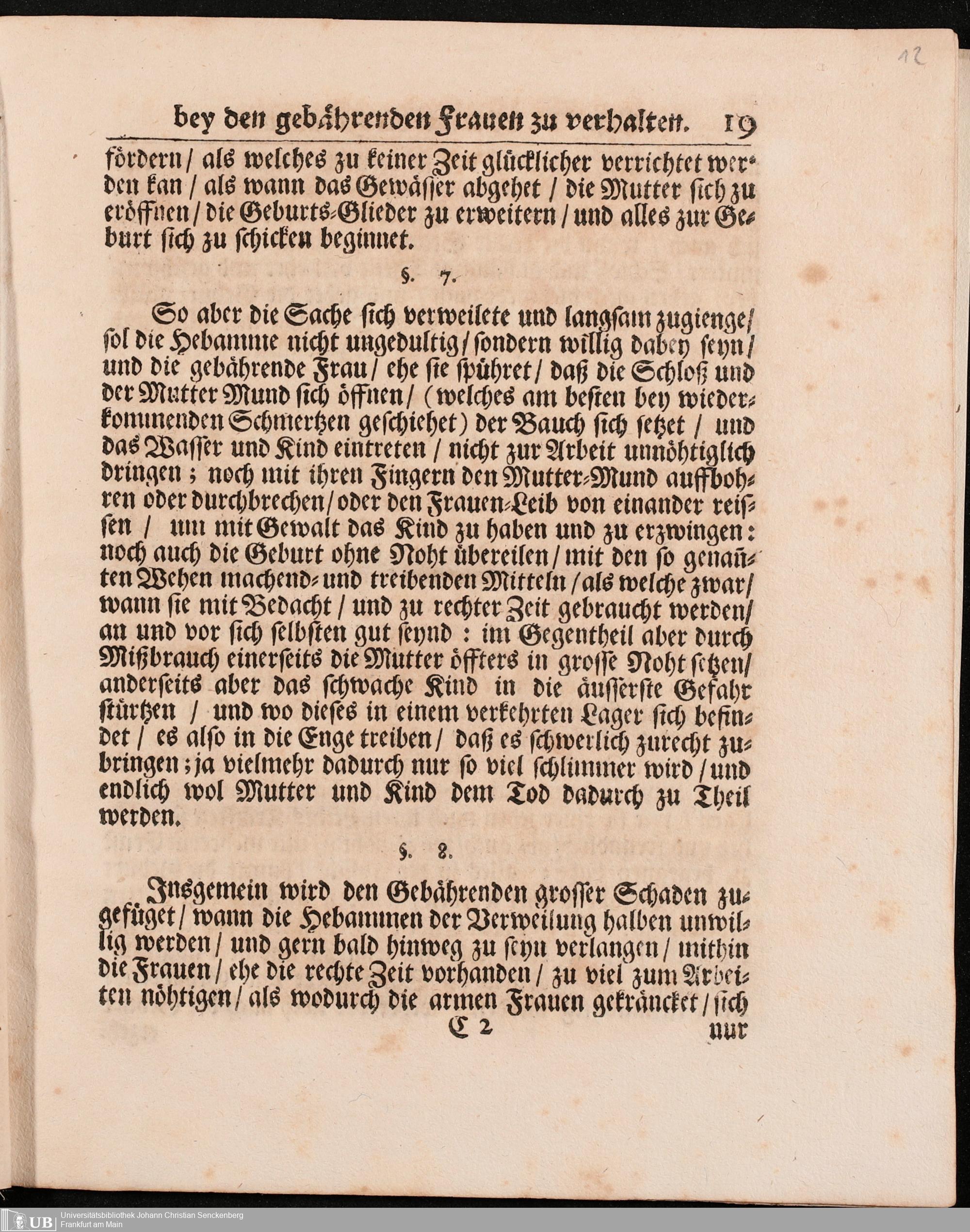 Na 31 Nachlass Johann Christian Senckenberg, 296 - Hebammen-Ordnung von Adam Lonuicerus