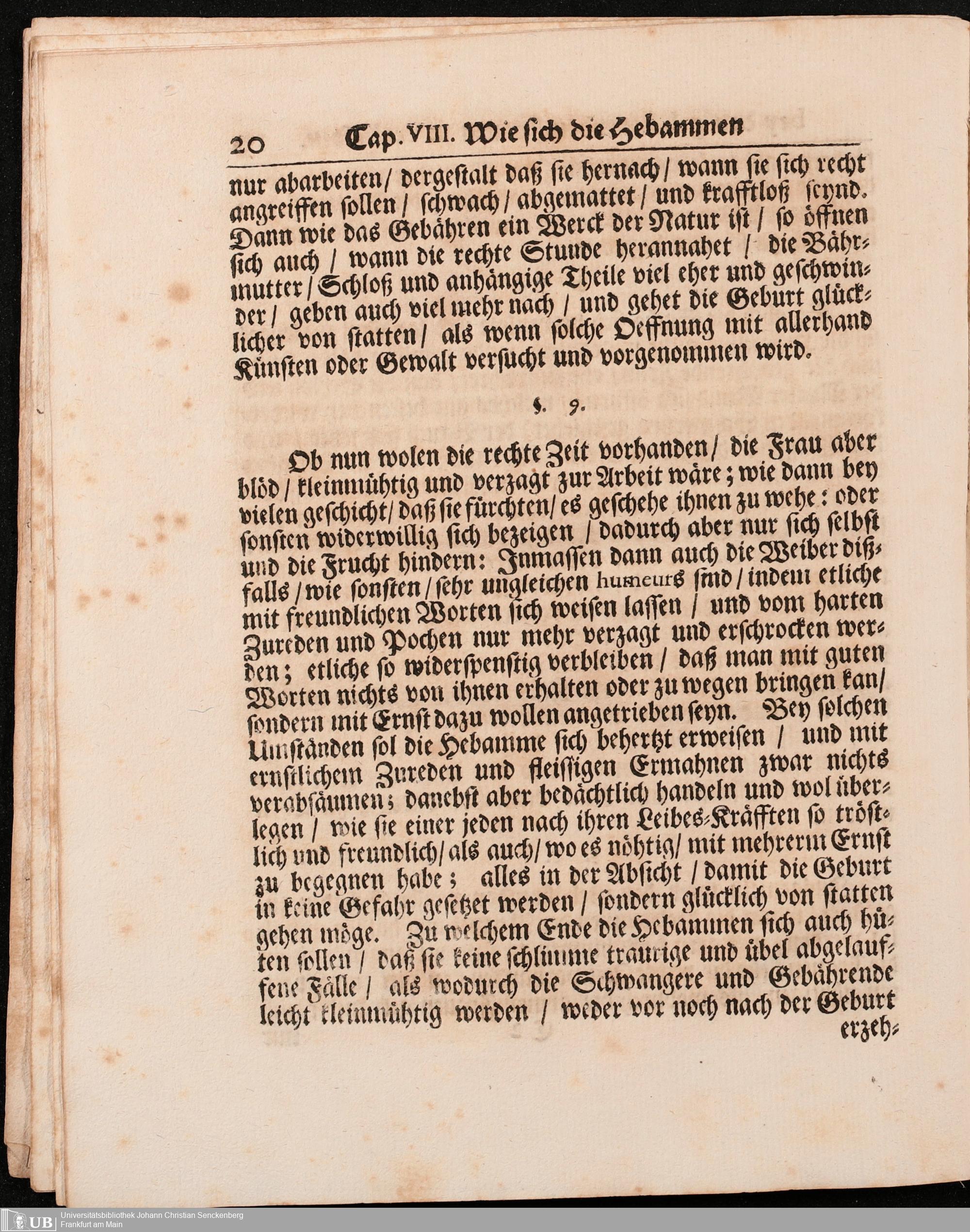 Na 31 Nachlass Johann Christian Senckenberg, 296 - Hebammen-Ordnung von Adam Lonuicerus