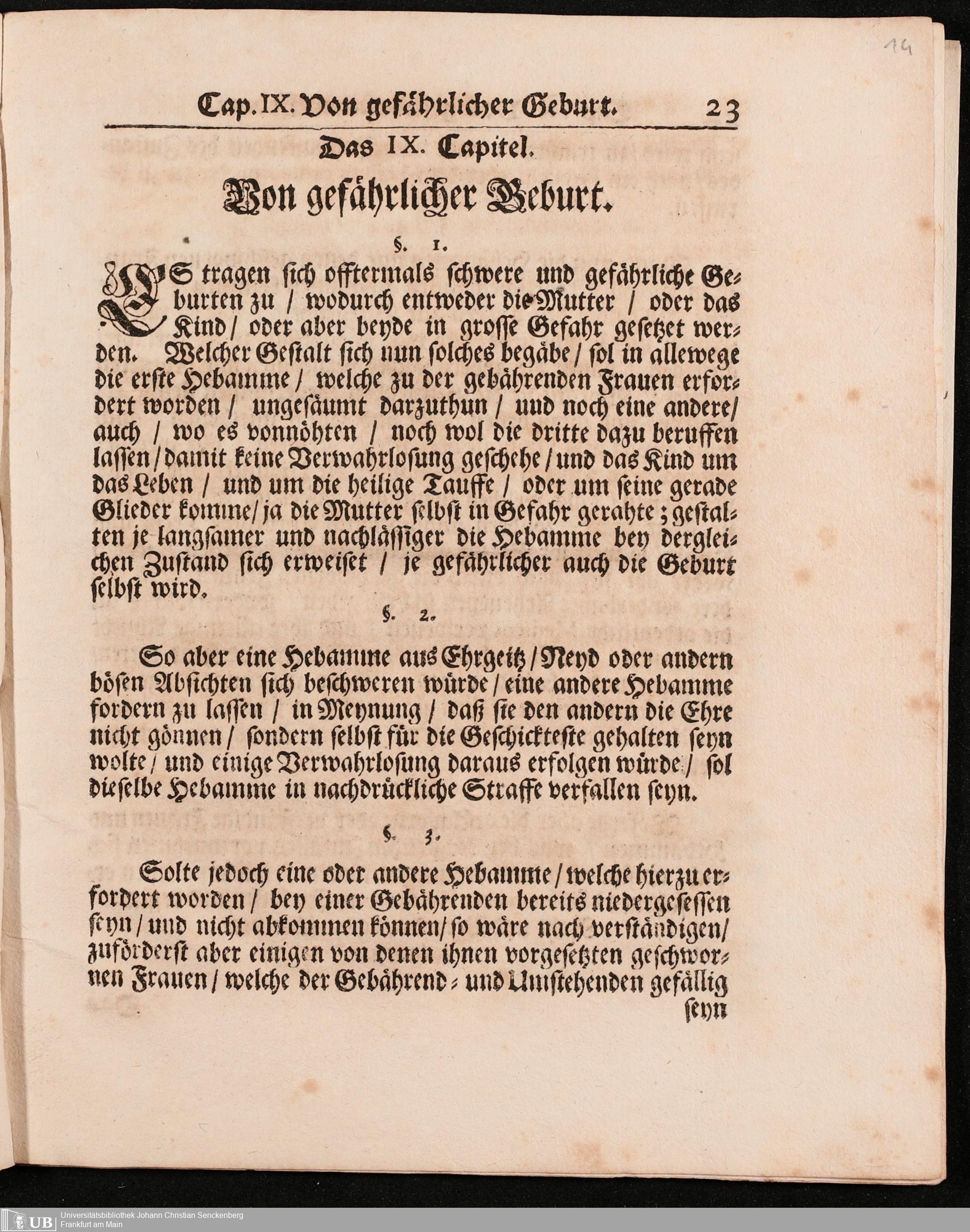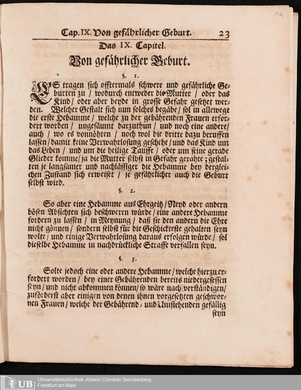 Na 31 Nachlass Johann Christian Senckenberg, 296 - Hebammen-Ordnung von Adam Lonuicerus