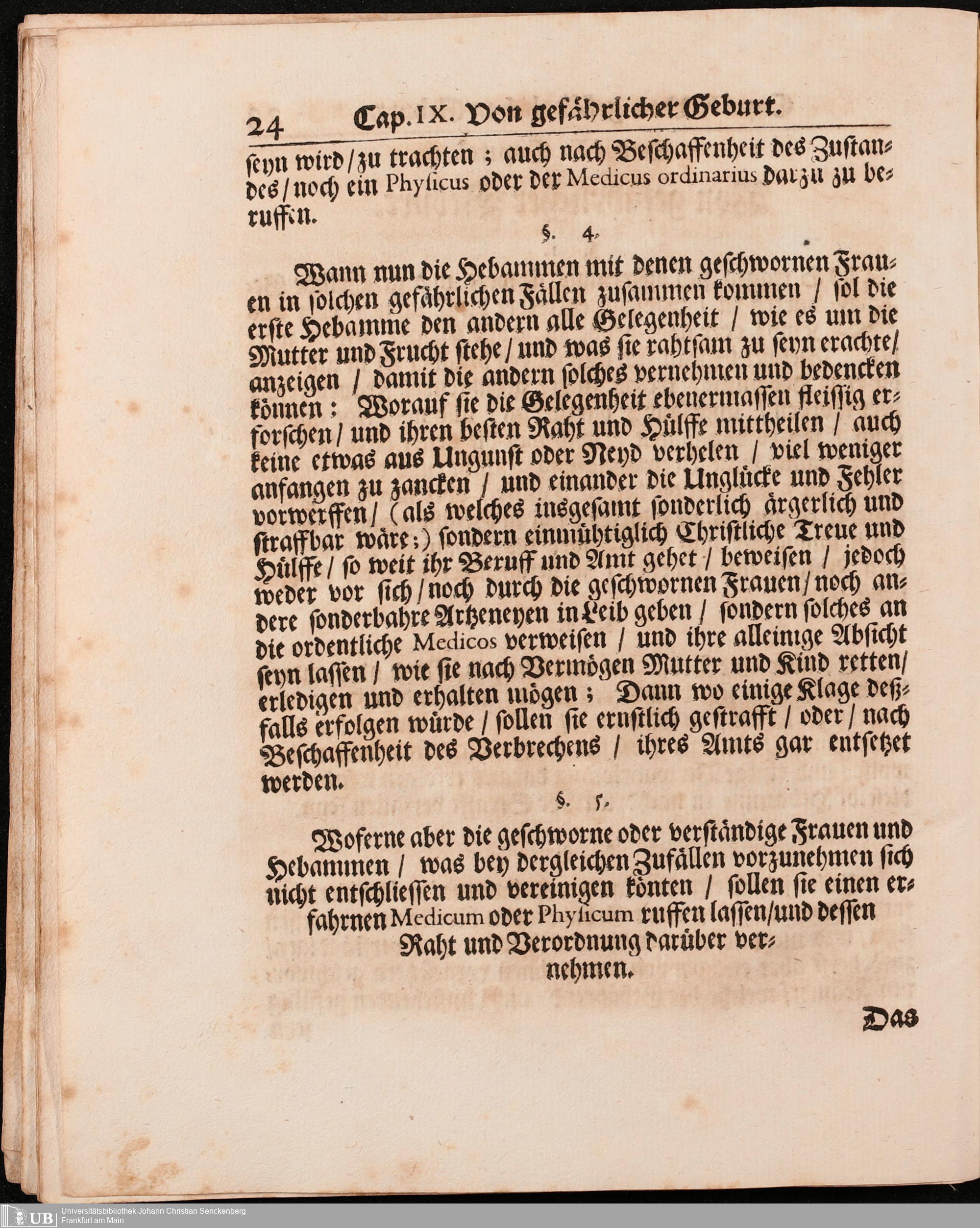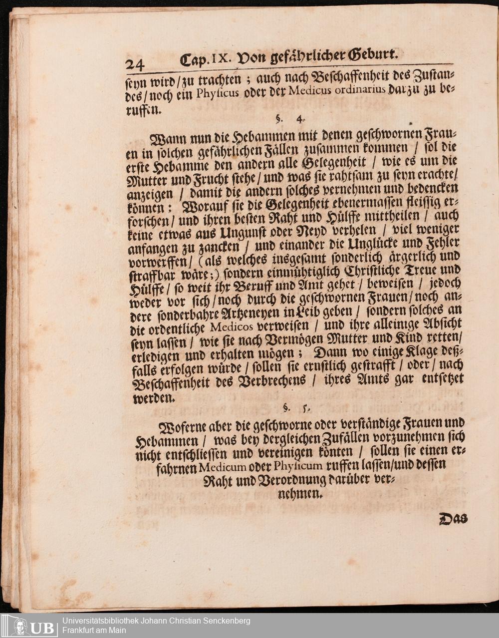 Na 31 Nachlass Johann Christian Senckenberg, 296 - Hebammen-Ordnung von Adam Lonuicerus