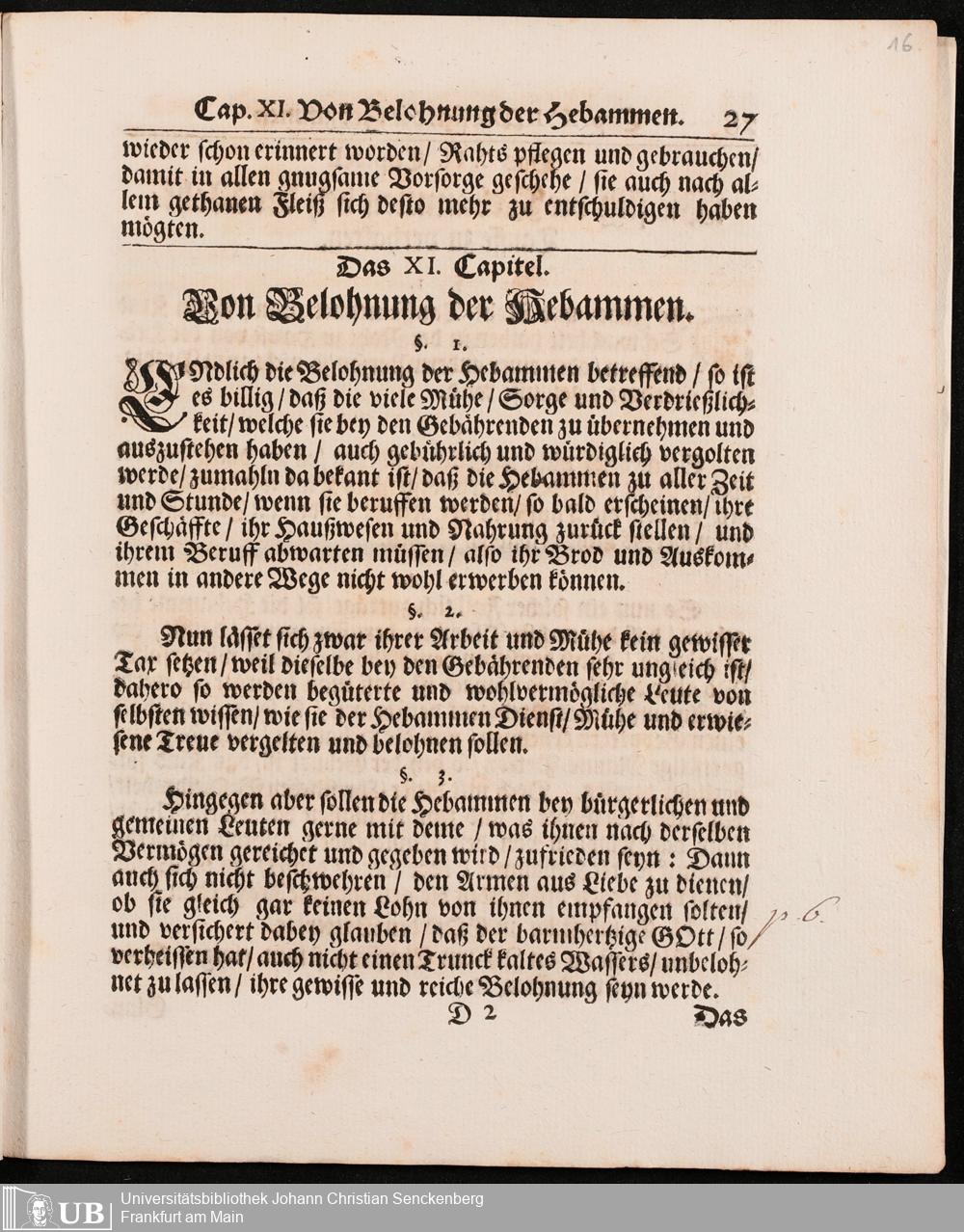 Na 31 Nachlass Johann Christian Senckenberg, 296 - Hebammen-Ordnung von Adam Lonuicerus