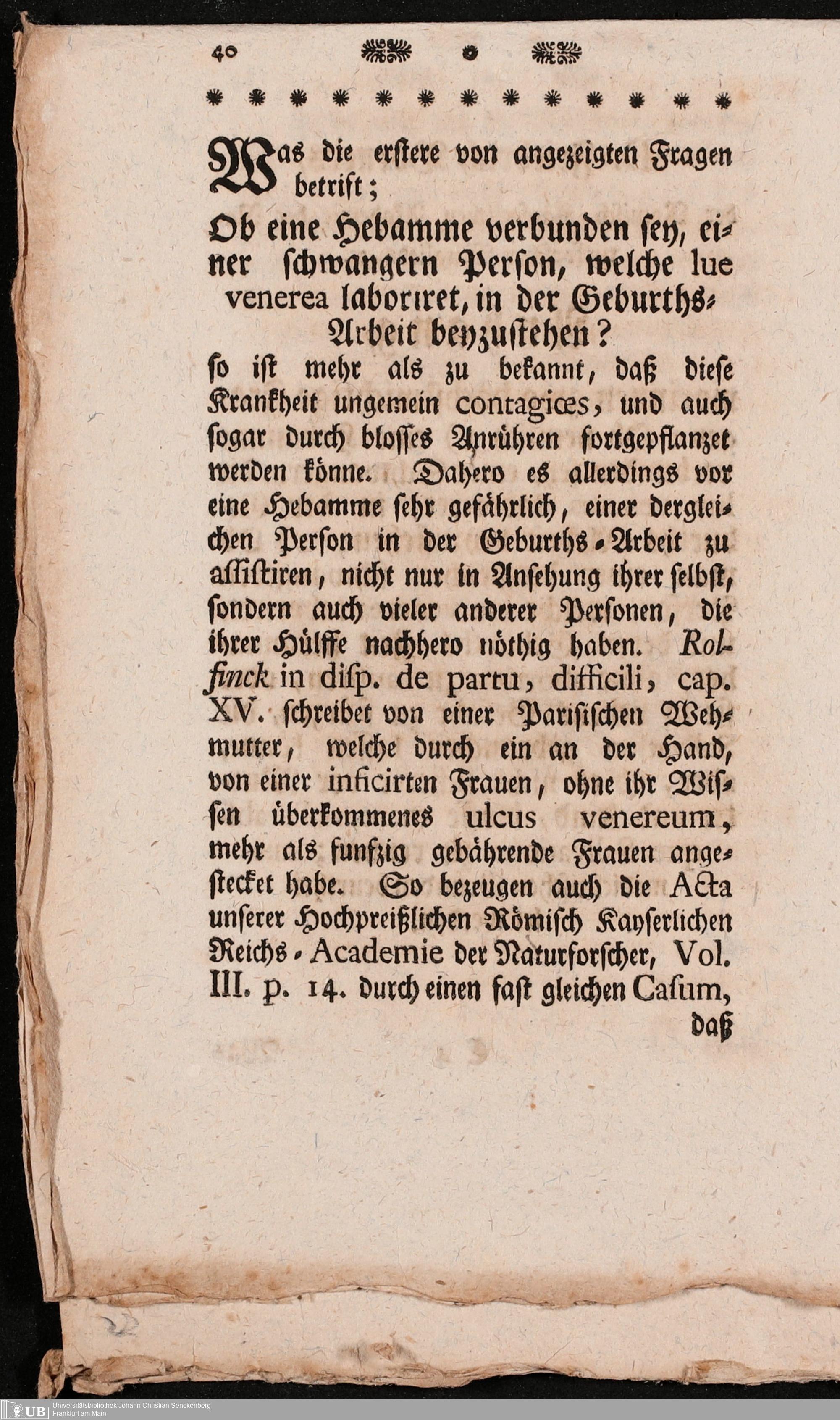 Na 31 Nachlass Johann Christian Senckenberg, 296 - Hebammen-Ordnung von Adam Lonuicerus