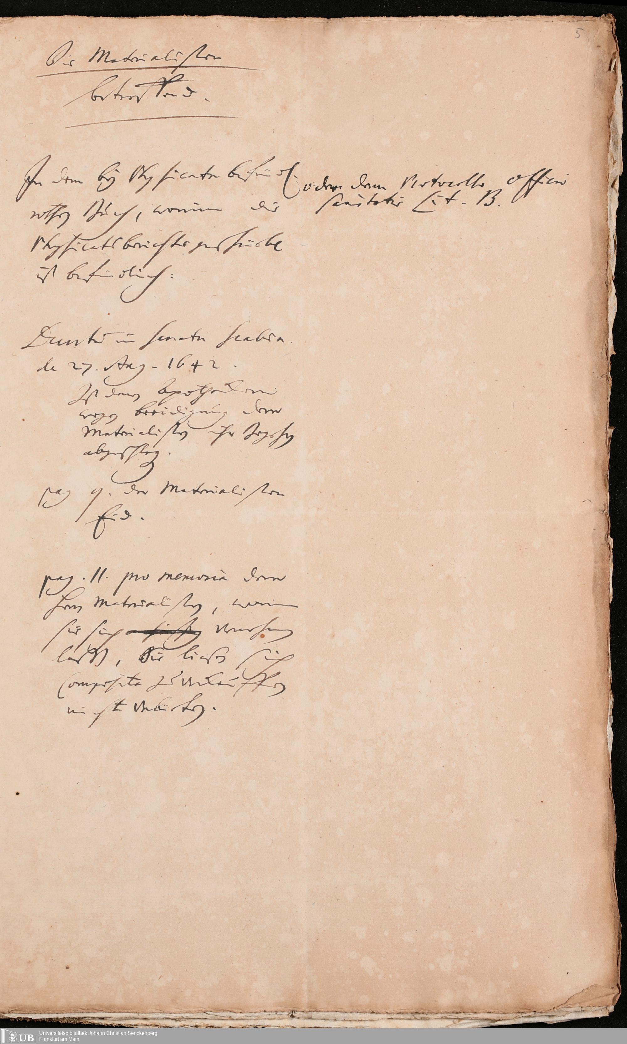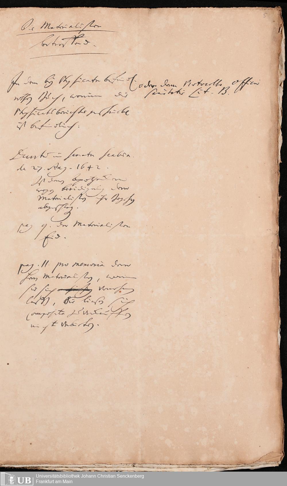 Na 31 Nachlass Johann Christian Senckenberg, 298 - Aufzeichnungen Senckenbergs zum Medizinalwesen