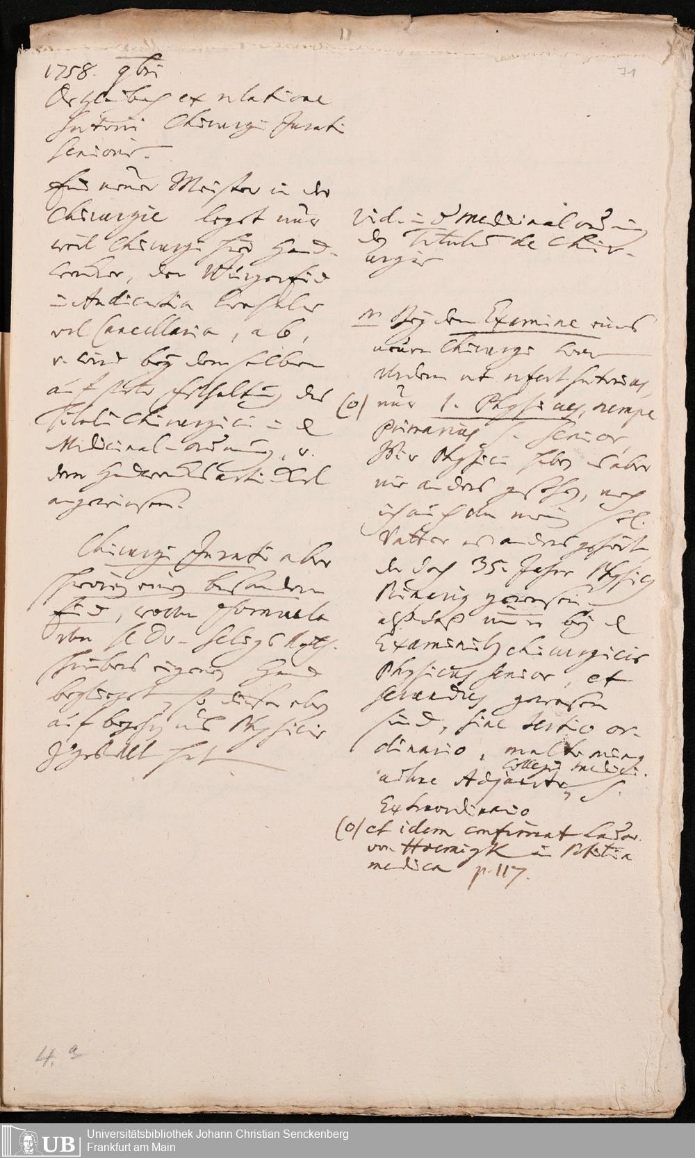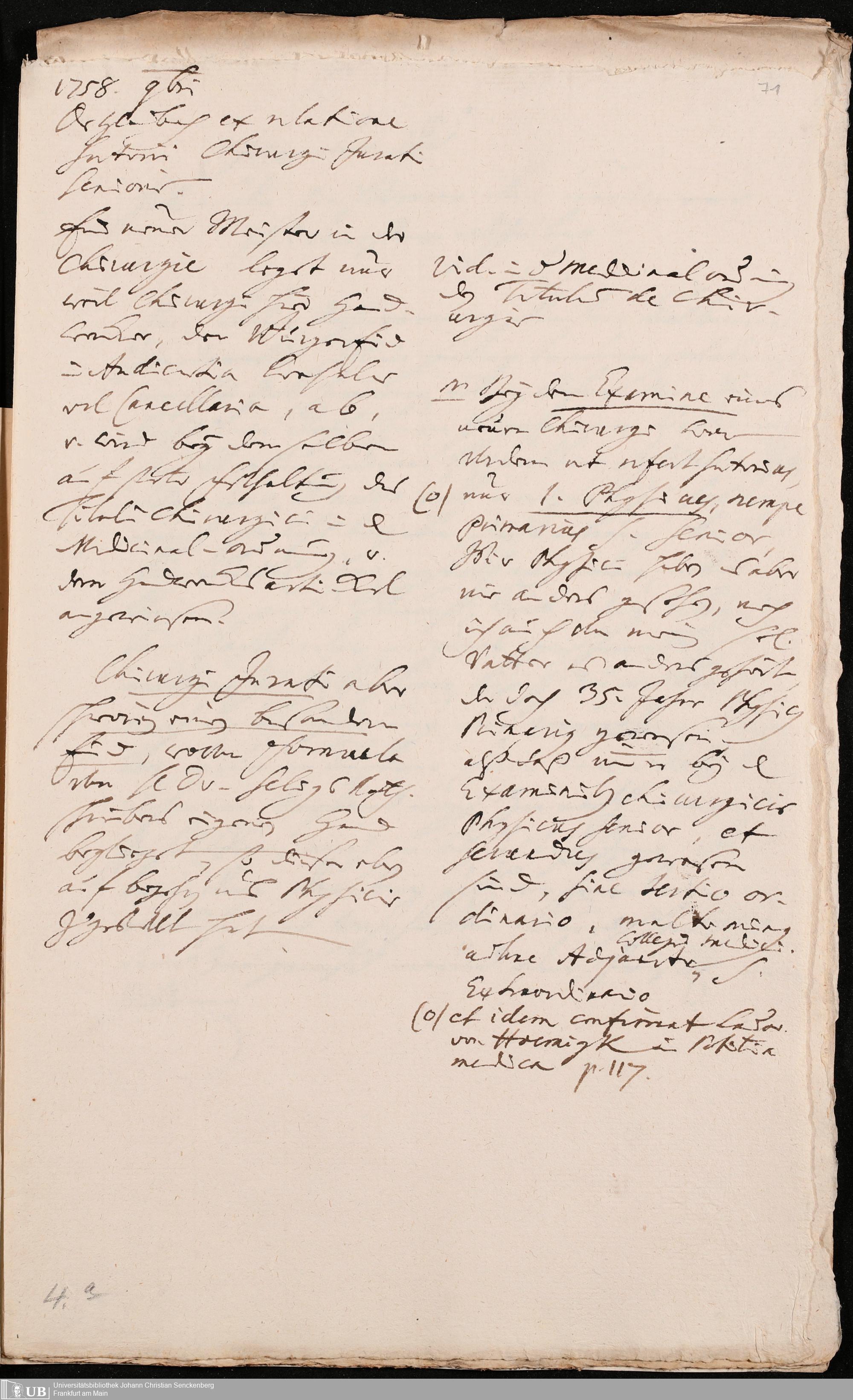 Na 31 Nachlass Johann Christian Senckenberg, 298 - Aufzeichnungen Senckenbergs zum Medizinalwesen