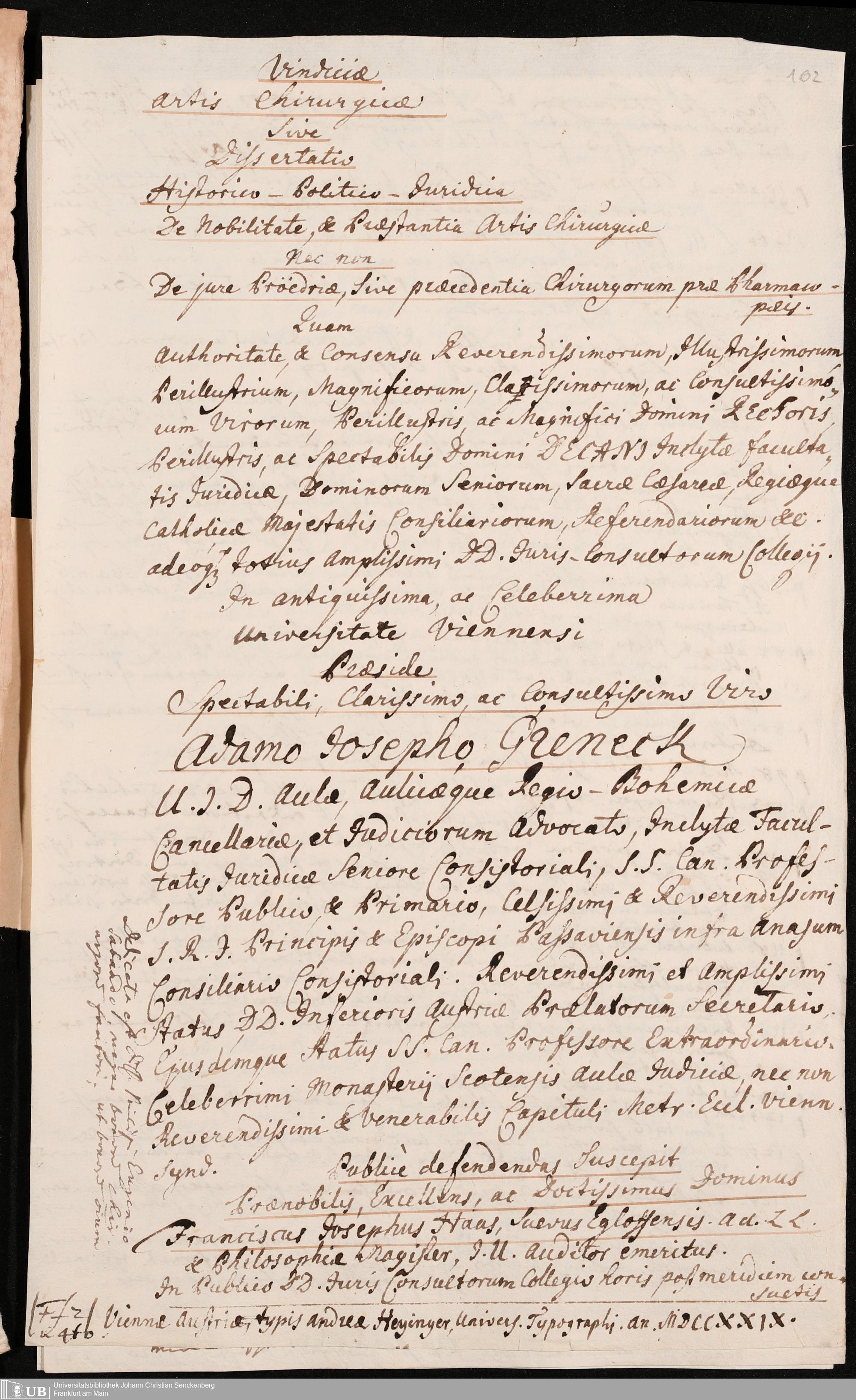 Na 31 Nachlass Johann Christian Senckenberg, 298 - Aufzeichnungen Senckenbergs zum Medizinalwesen