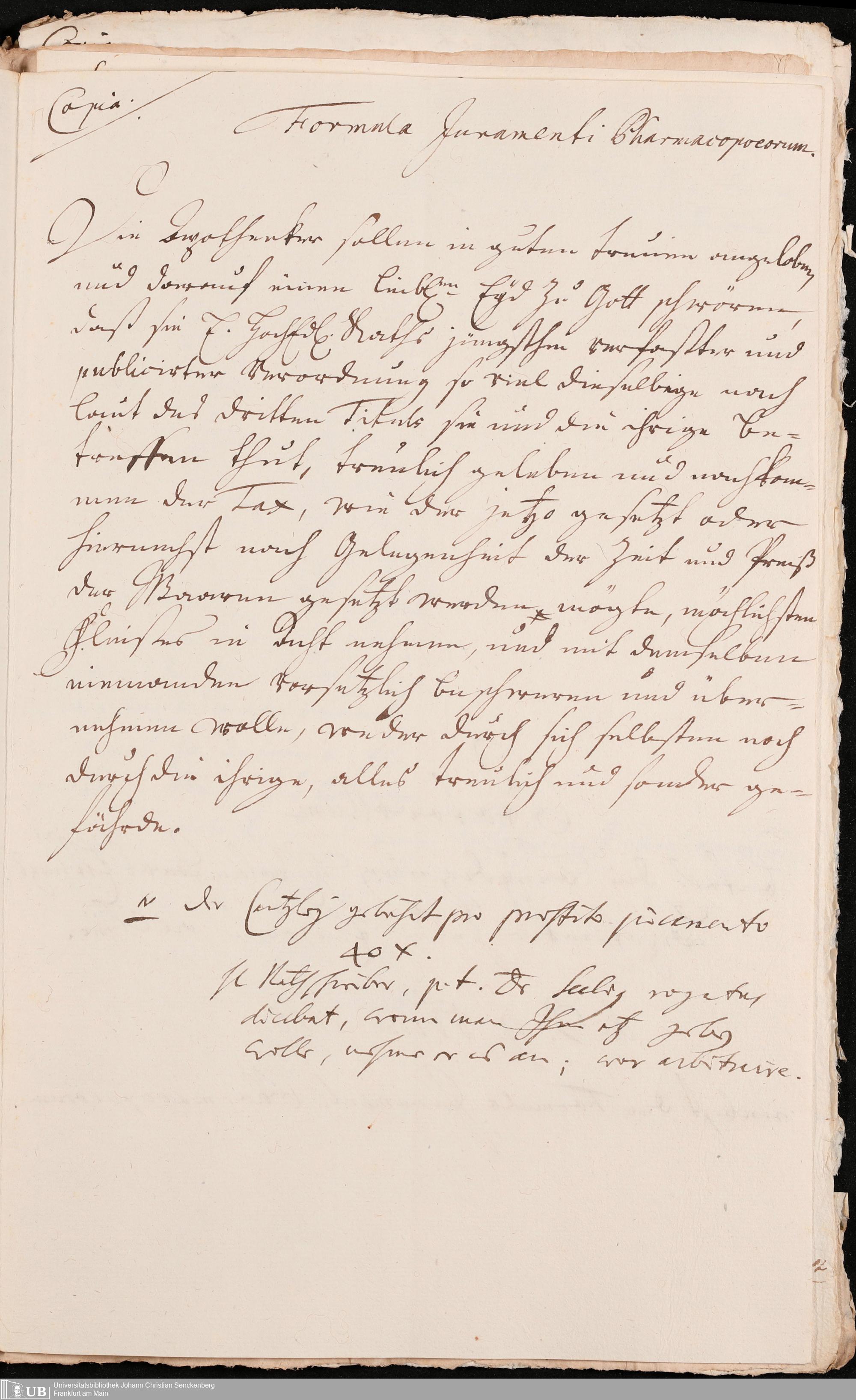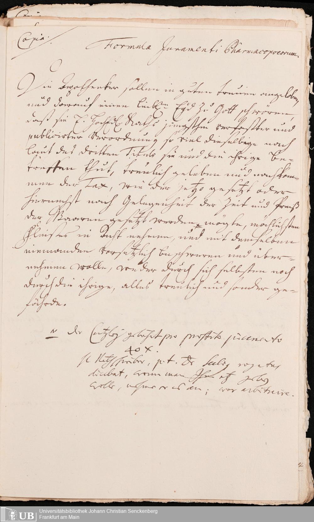 Na 31 Nachlass Johann Christian Senckenberg, 272 - Allgemeines zum Physicat zu Frankfurt