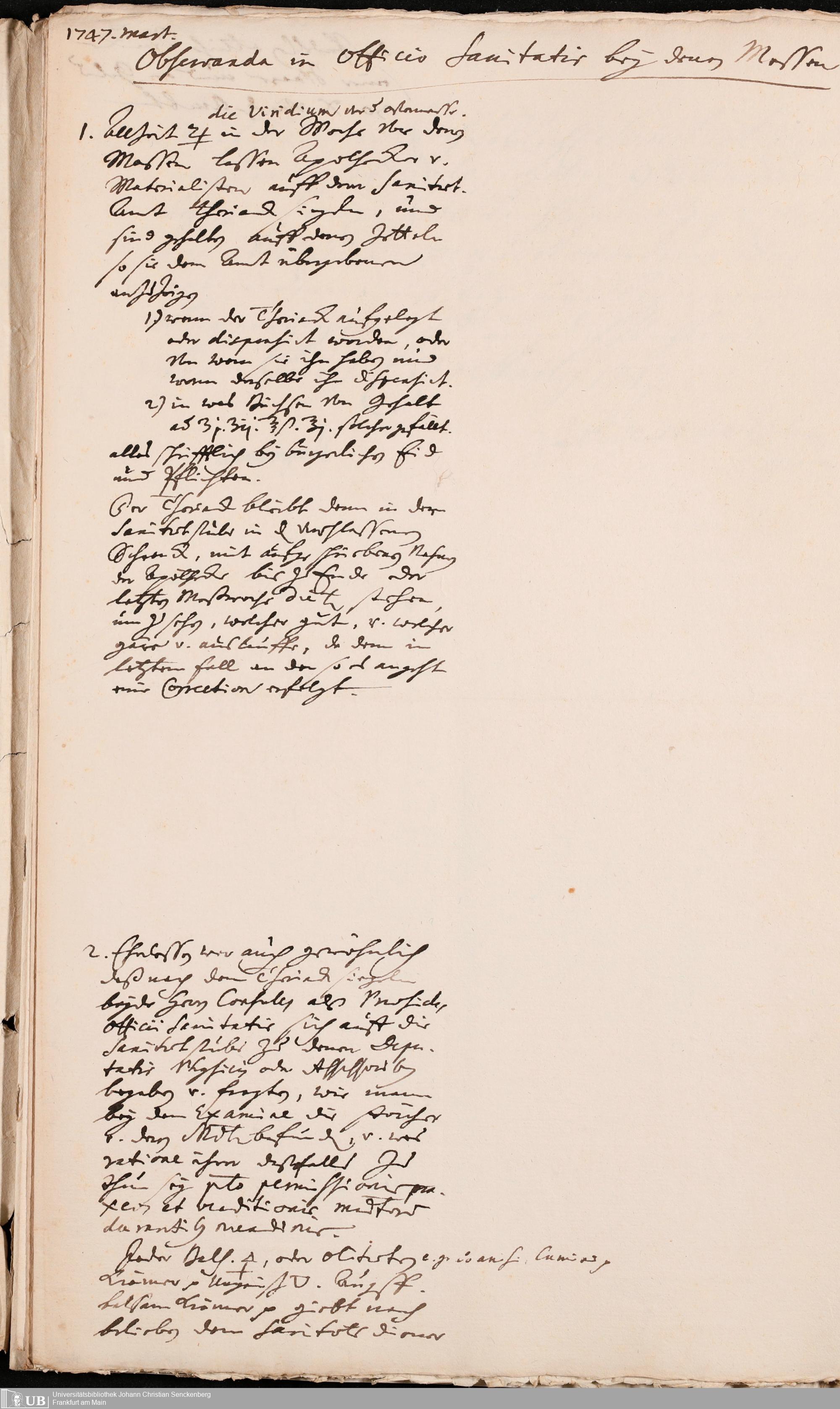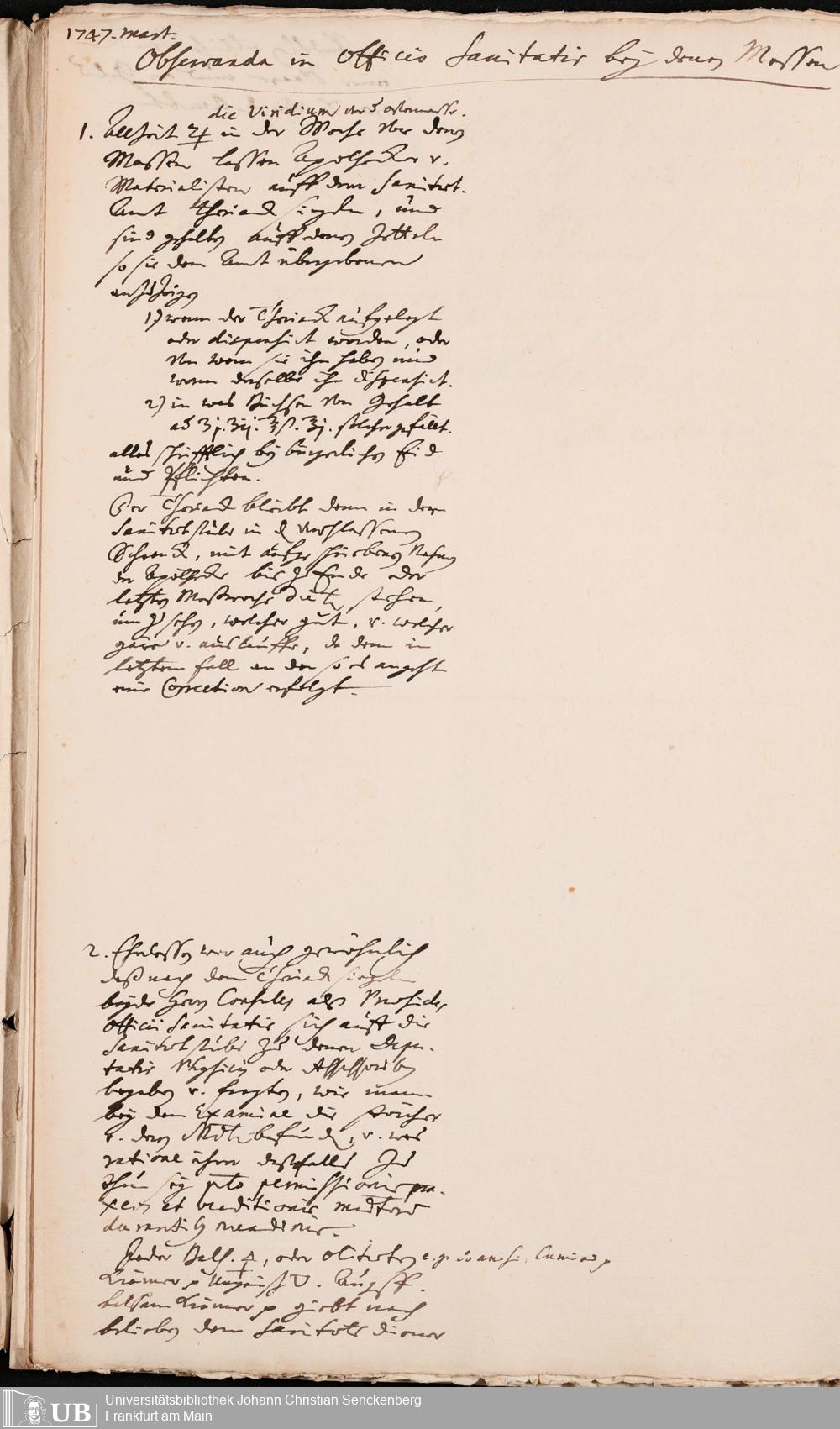 Na 31 Nachlass Johann Christian Senckenberg, 272 - Allgemeines zum Physicat zu Frankfurt