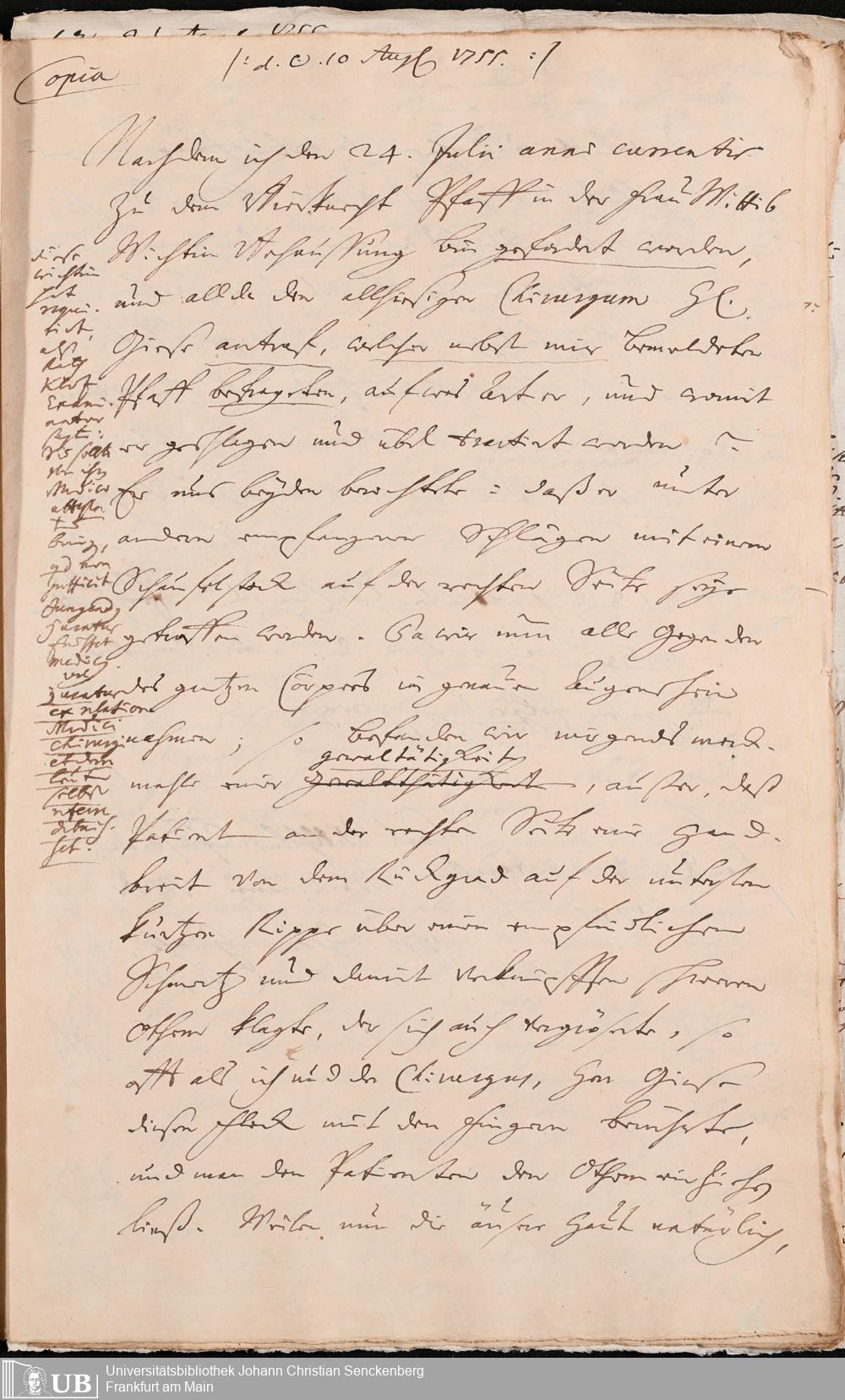 Na 31 Nachlass Johann Christian Senckenberg, 272 - Allgemeines zum Physicat zu Frankfurt
