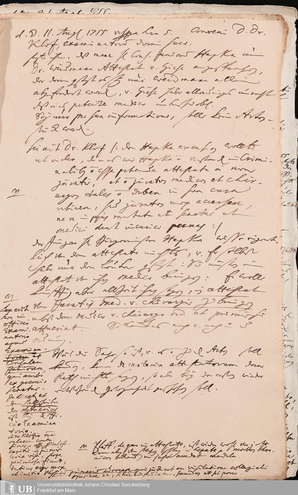 Na 31 Nachlass Johann Christian Senckenberg, 272 - Allgemeines zum Physicat zu Frankfurt