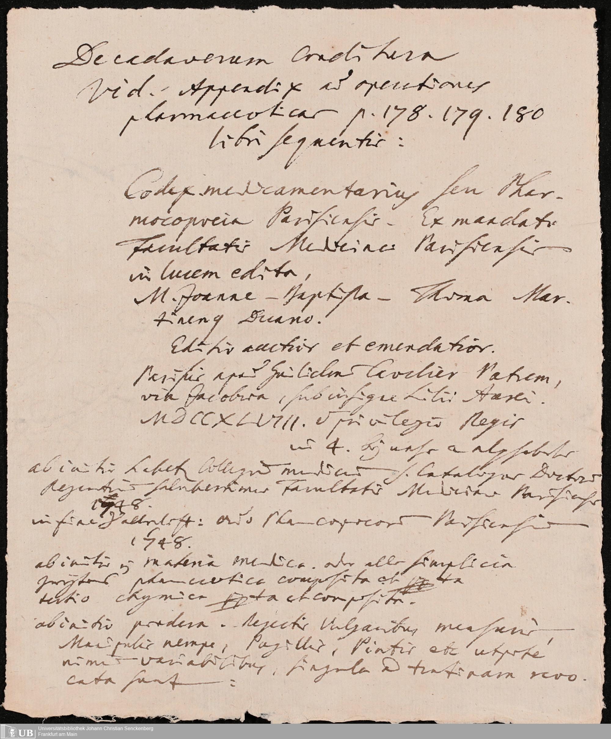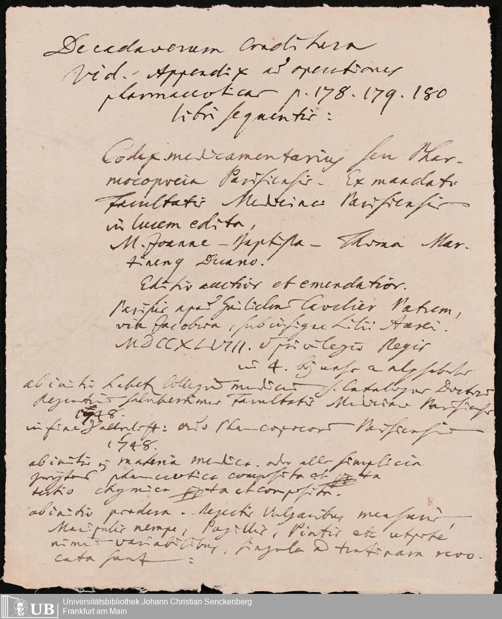 Nachlass Johann Christian Senckenberg