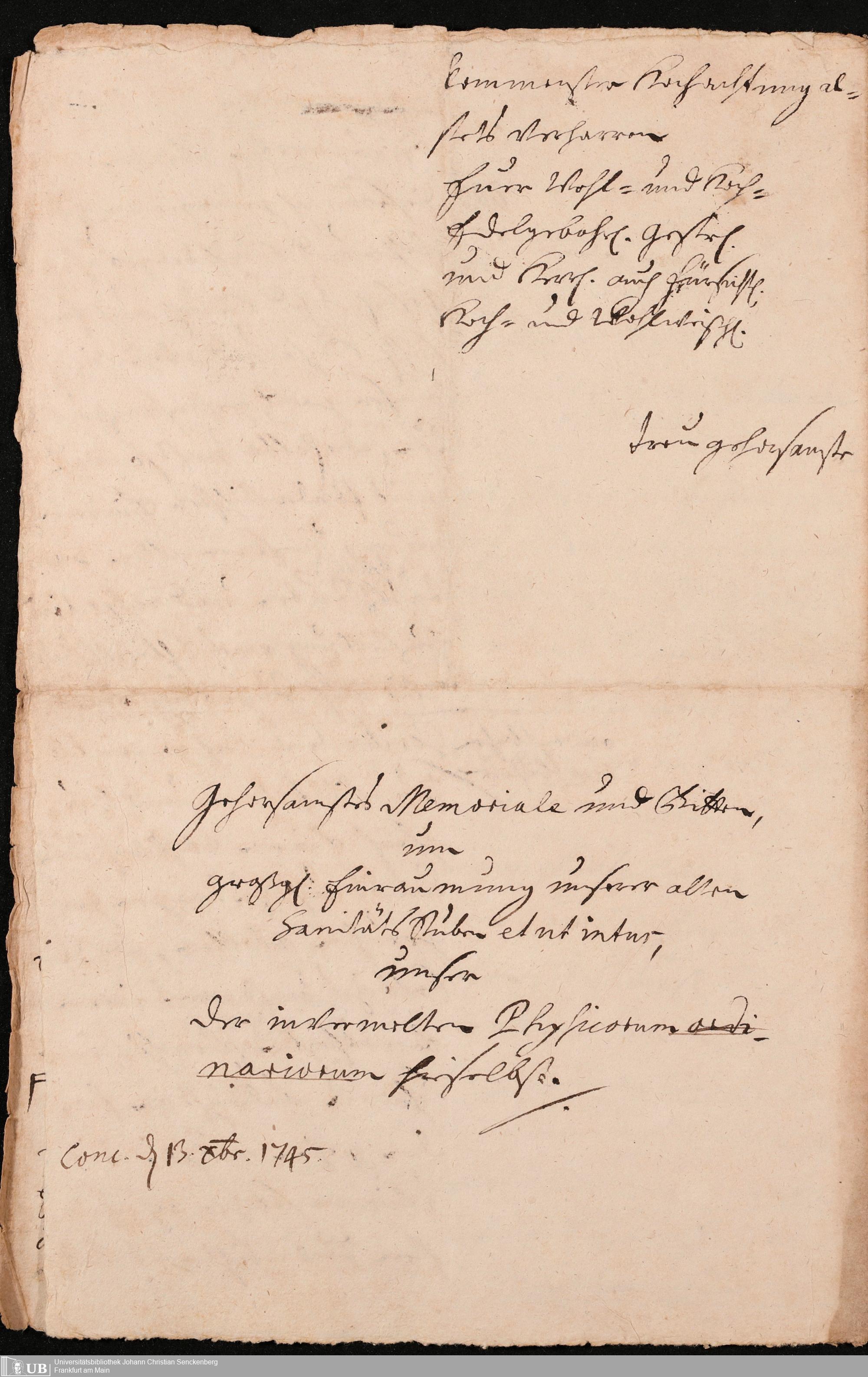 Na 31 Nachlass Johann Christian Senckenberg, 273 - Gesammelte Schriftstücke zum Physicat
