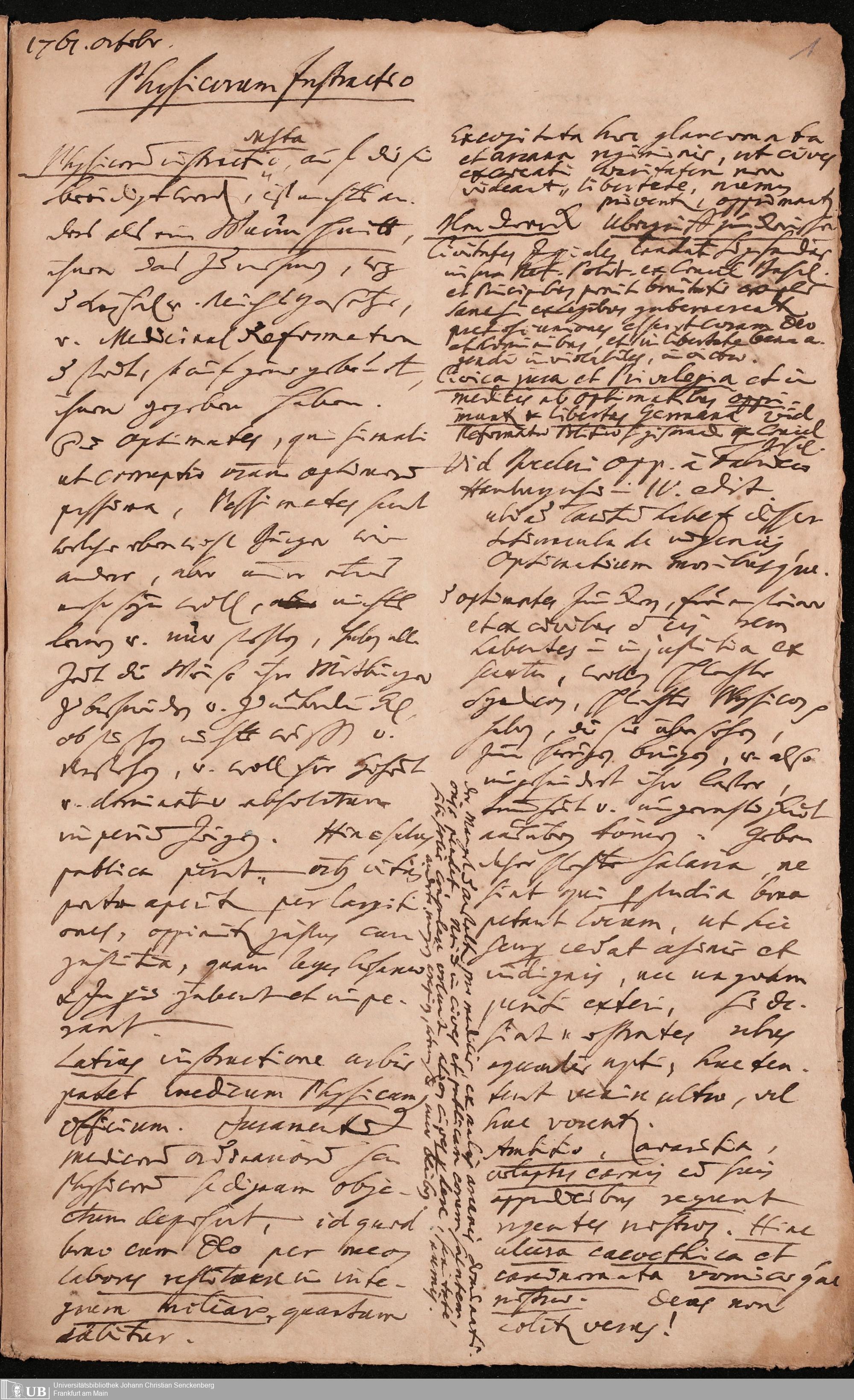 Na 31 Nachlass Johann Christian Senckenberg, 273 - Gesammelte Schriftstücke zum Physicat