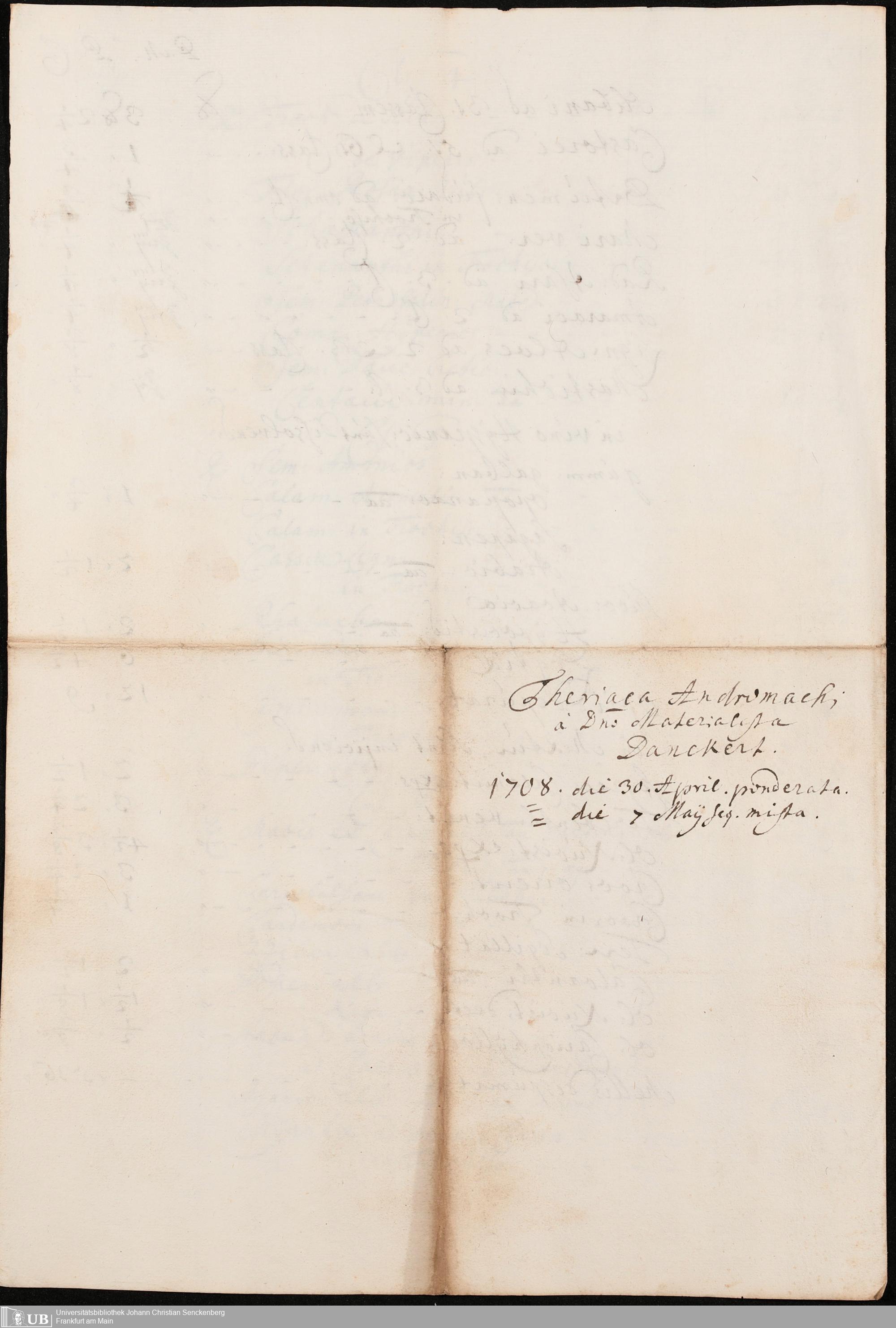Na 31 Nachlass Johann Christian Senckenberg, 275 - Nachrichten de Compositionibus Theriacae