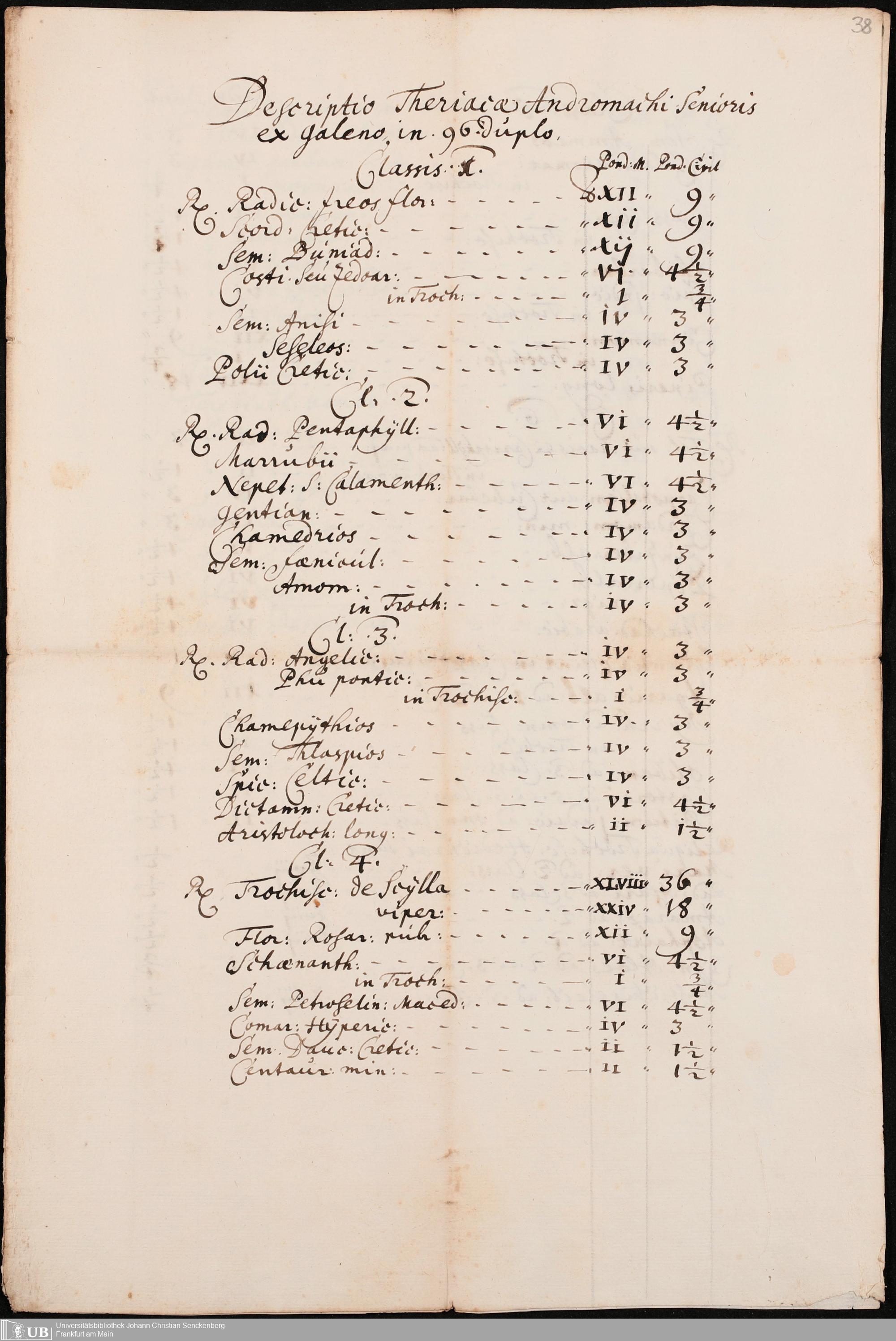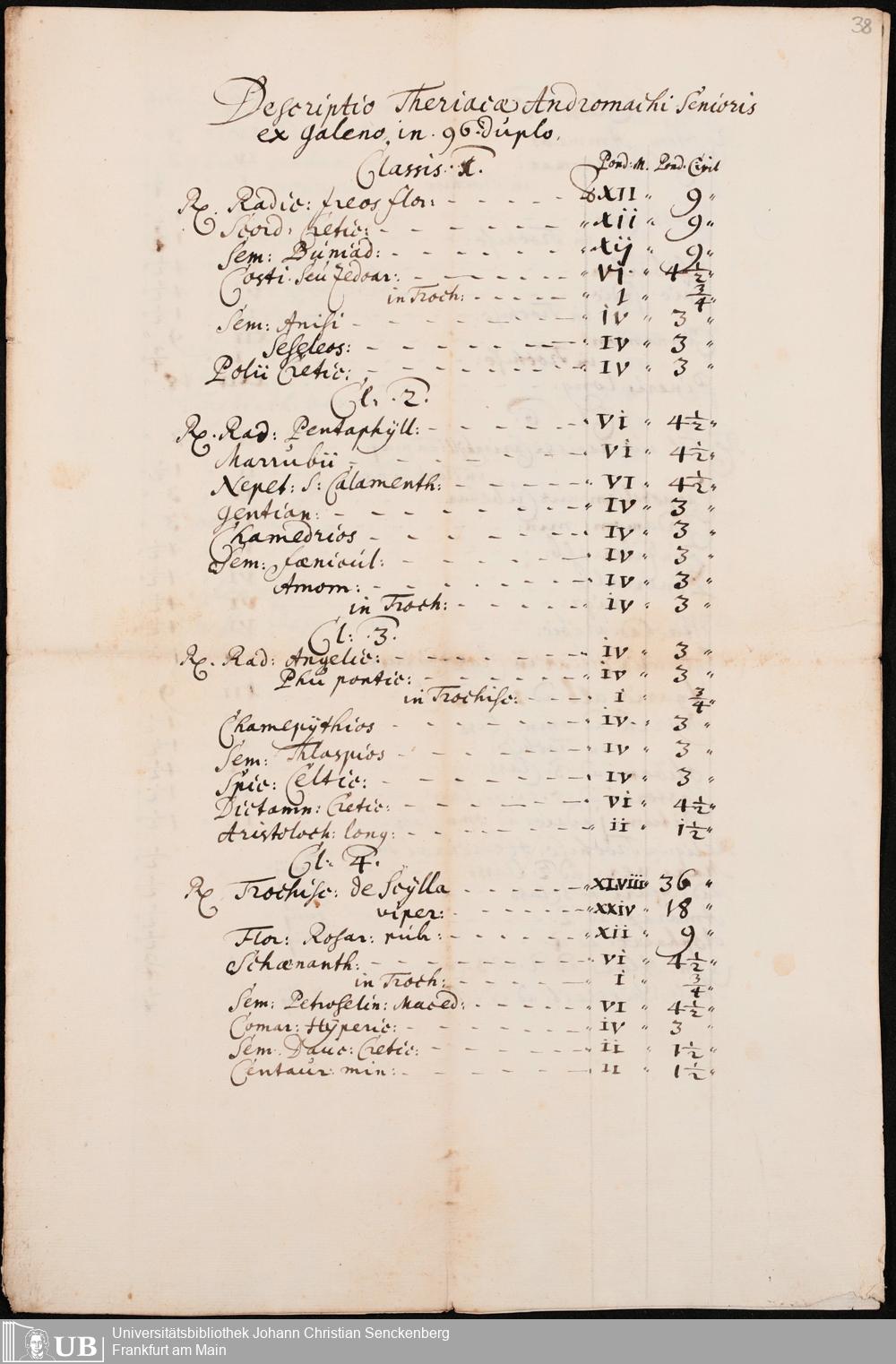 Na 31 Nachlass Johann Christian Senckenberg, 275 - Nachrichten de Compositionibus Theriacae