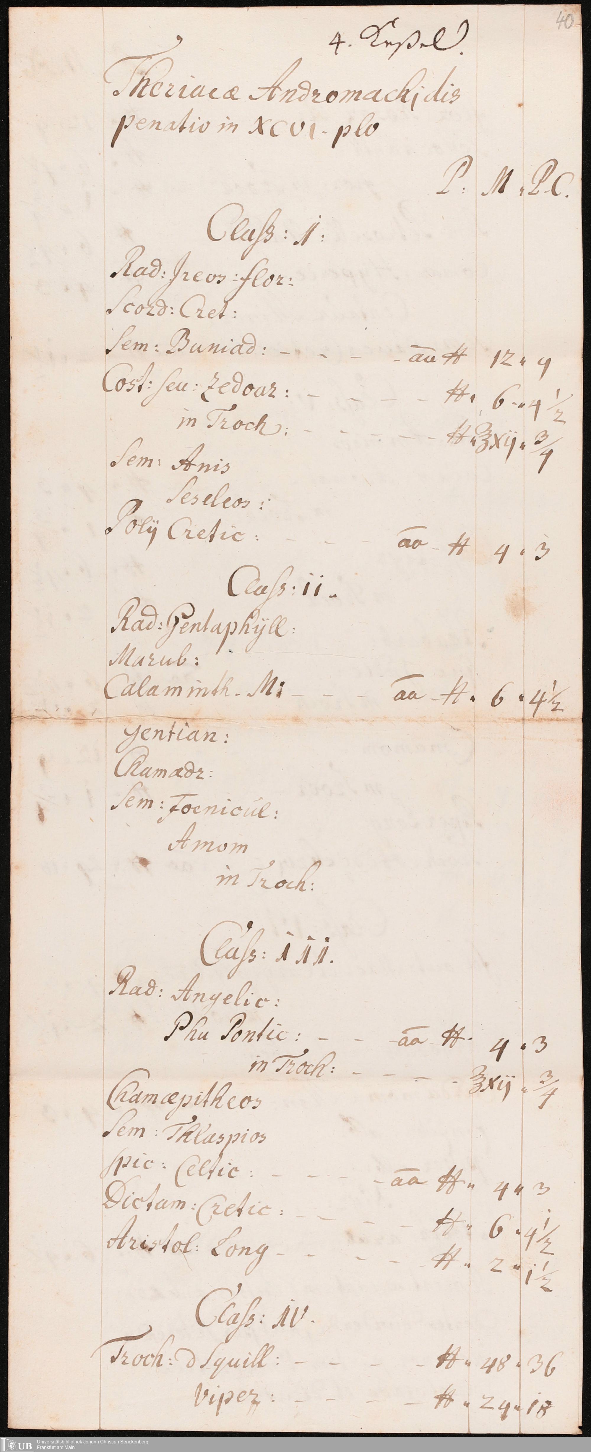 Na 31 Nachlass Johann Christian Senckenberg, 275 - Nachrichten de Compositionibus Theriacae
