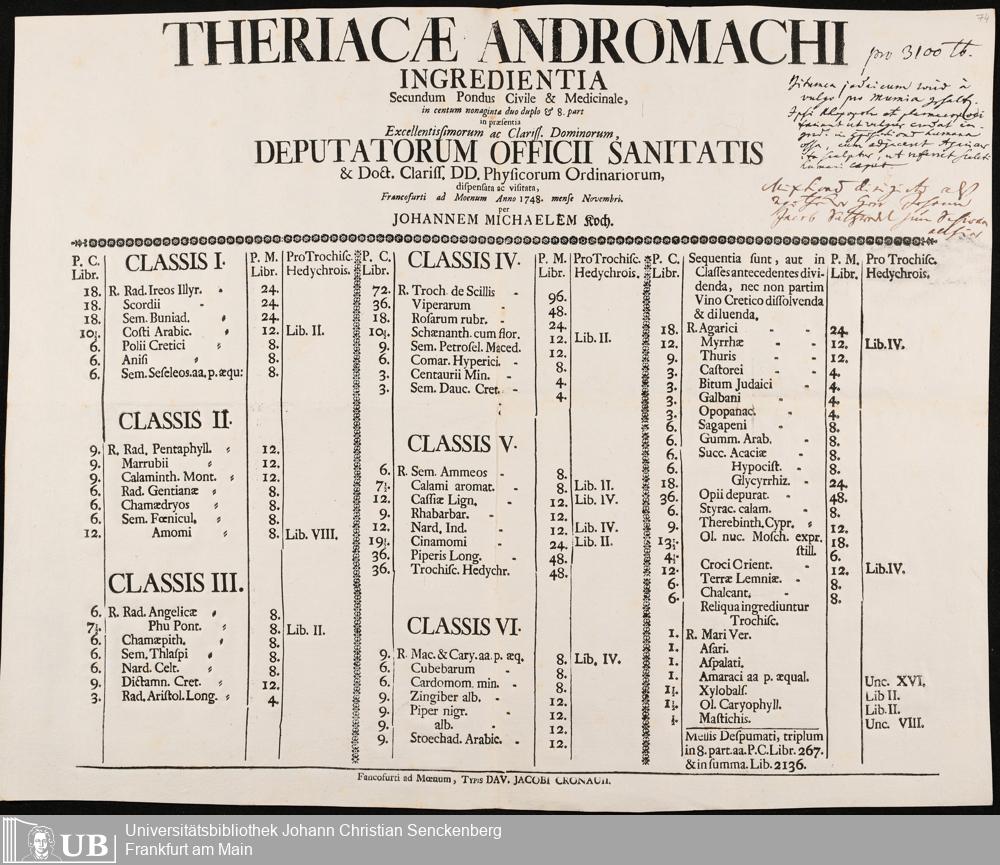 Na 31 Nachlass Johann Christian Senckenberg, 275 - Nachrichten de Compositionibus Theriacae
